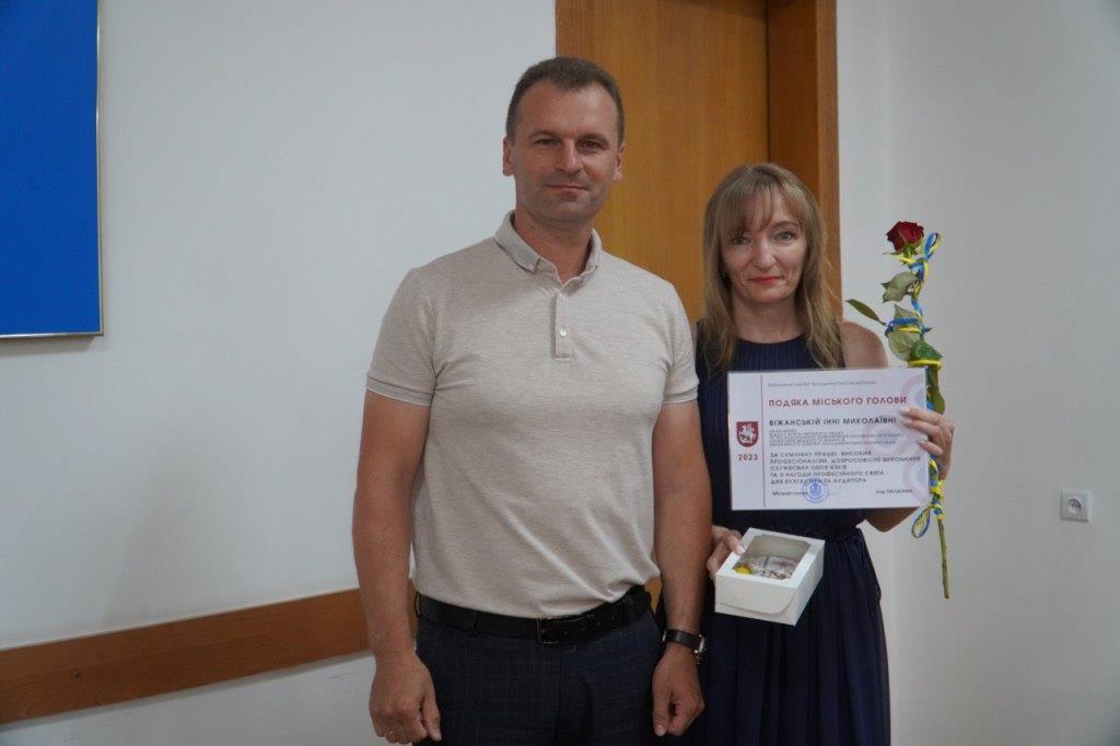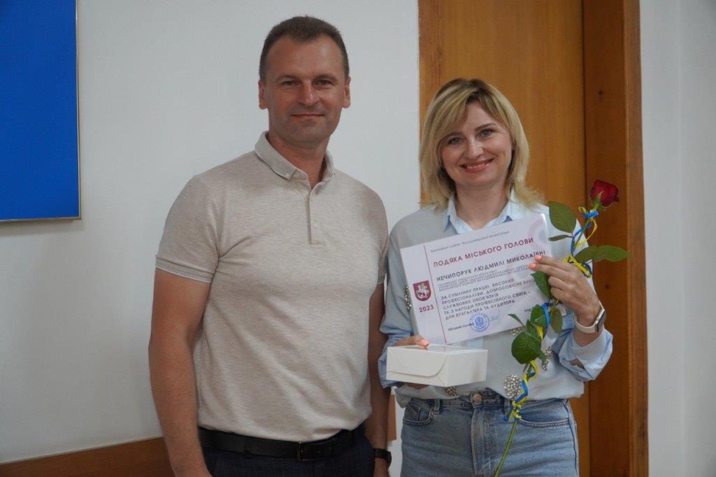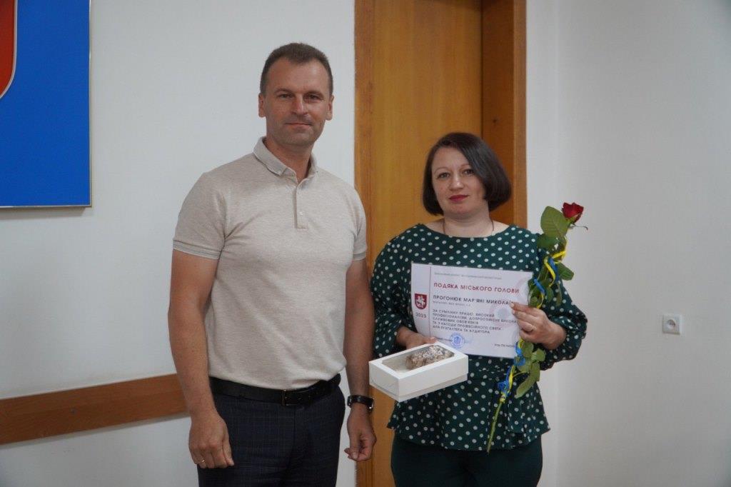 За сумлінну працю, високий професіоналізм, добросовісне виконання службових обов’язків квіти, подяки та подарунки цього дня міський голова вручив: