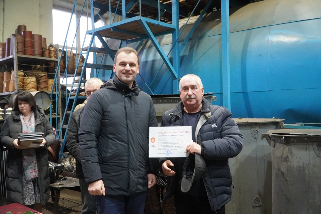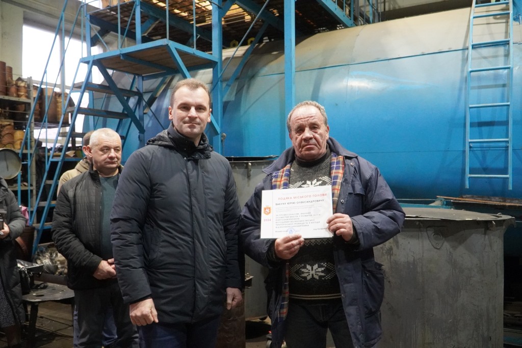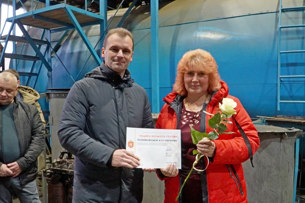 Вітаючи, міський голова вручив з нагоди свята подяки і премії електромонтеру виробничої електротехнічної дільниці з лабораторією Юрію Бакуну, контролеру енергонагляду групи клієнтського сервісу Тетяні Кляченко, електромонтеру виробничої дільниці кабельних ліній з лабораторією Володимиру Кірійчуку, фахівцю відділу приєднань та перспективи Аллі Позняковській та електромонтеру оперативно-виїзної бригади № 1 Тарасу Сачуку.