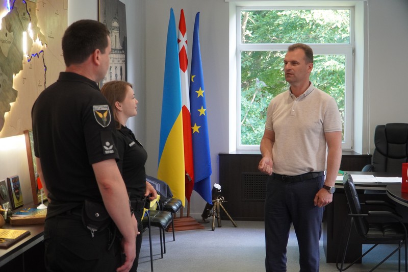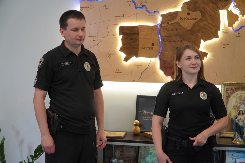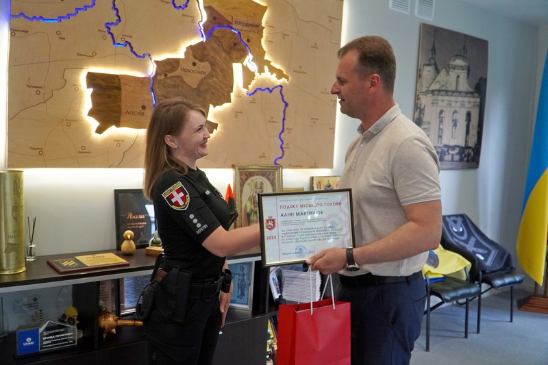 За гідне виконання обов’язків та з нагоди відзначення 6-ї річниці реалізації проєкту “Поліцейський офіцер громади” Андрій Грицюк та Аліна Мартинюк отримали подяки міського голови та пам’ятні подарунки.