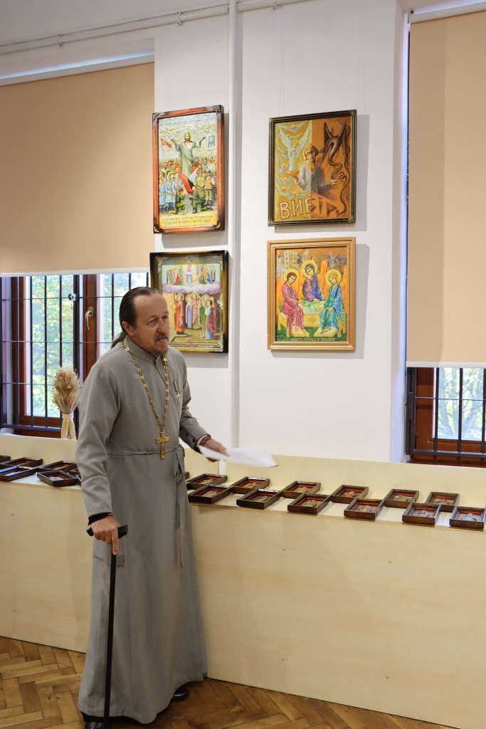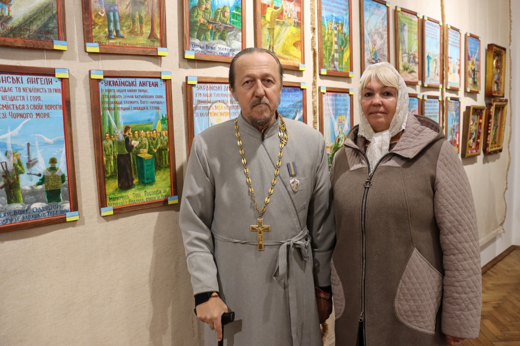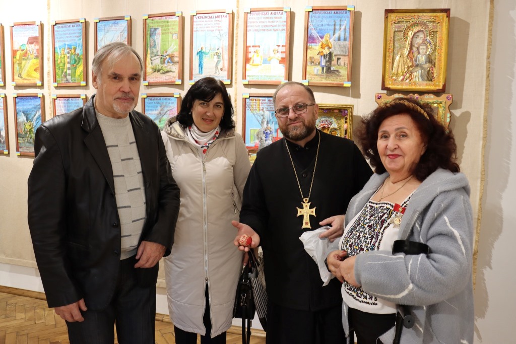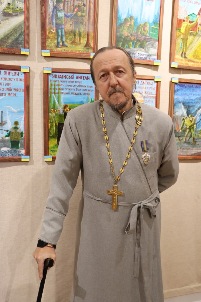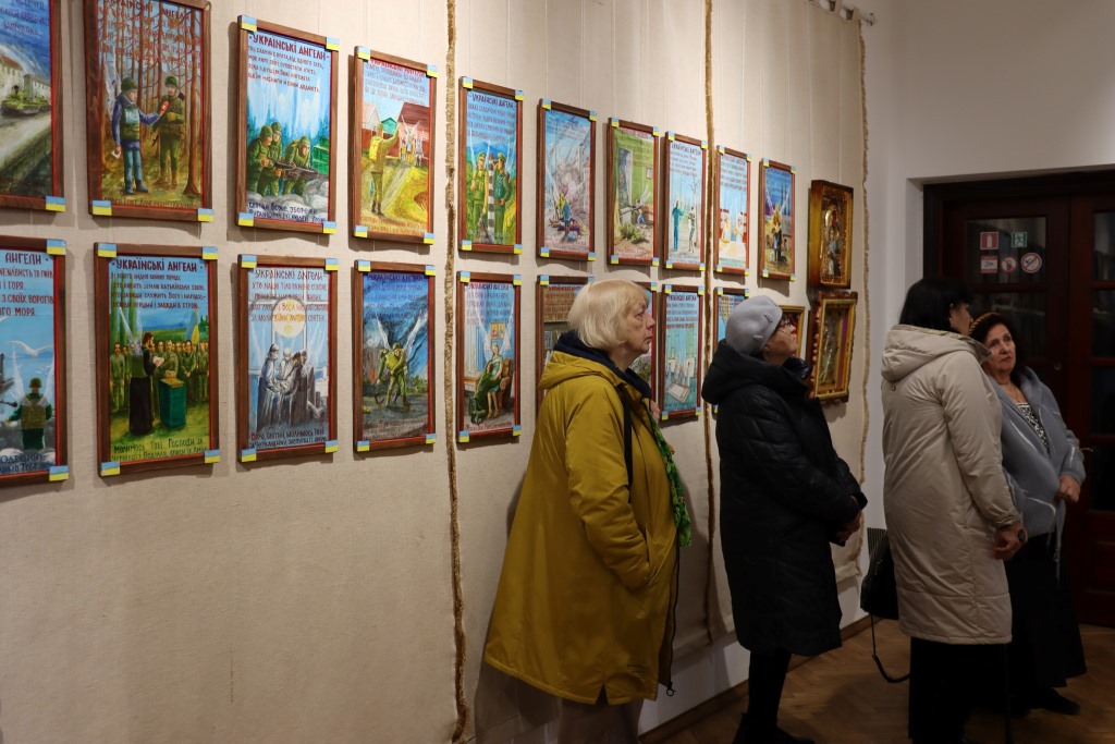У Володимирі священник із Луцька презентував картини, які можна придбати, аби допомогти ЗСУ