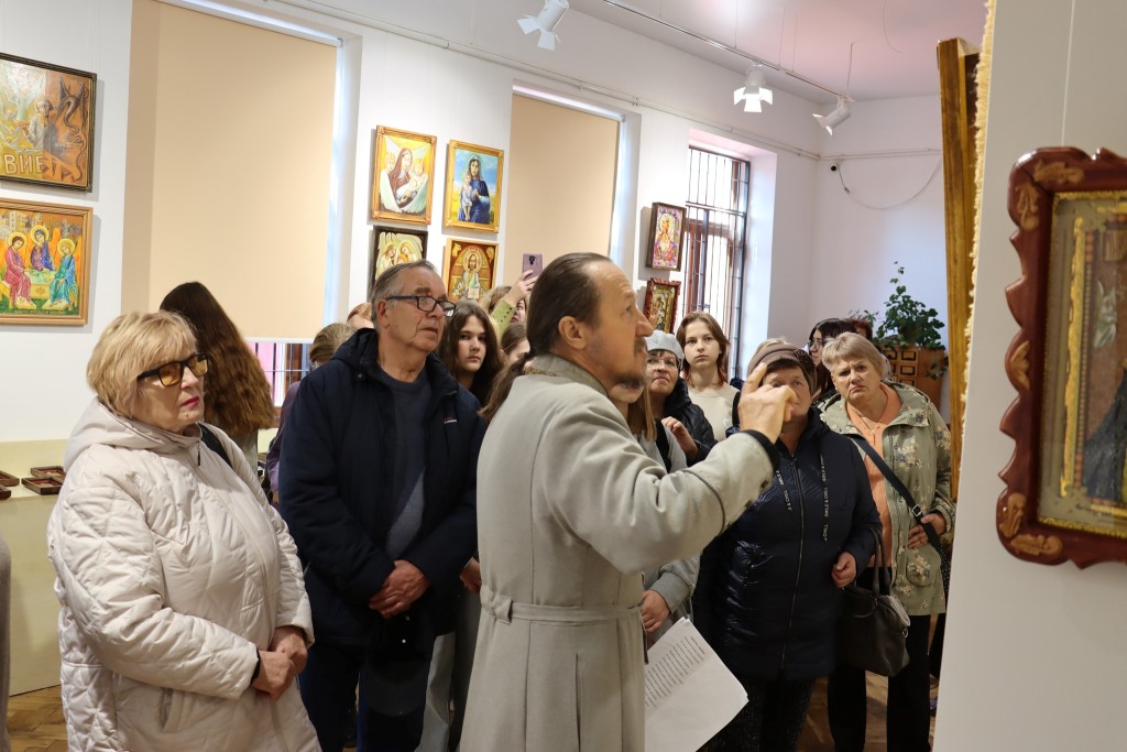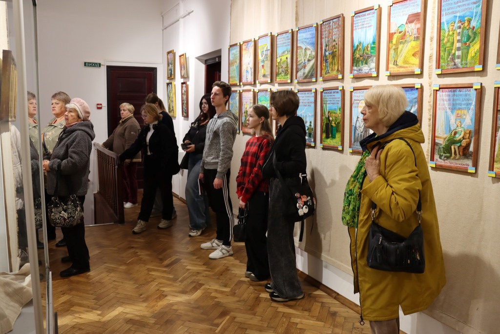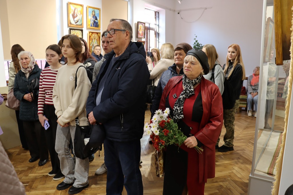 На захід з нагоди відкриття виставки «Новий образ України» в історичний музей прийшли жителі нашого міста, зокрема студенти фахового педколеджу, які навчаються на реставраторів ікон, разом з викладачем Лесею Мартинюк.