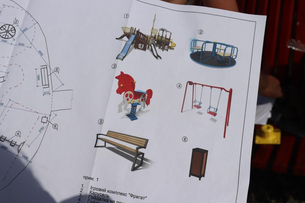 Новий дитячий майданчик включає ігровий комплекс у формі корабля, а також карусель і різні гойдалки. Окрім цього, на майданчику встановлять лавочки та смітники.