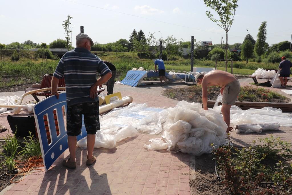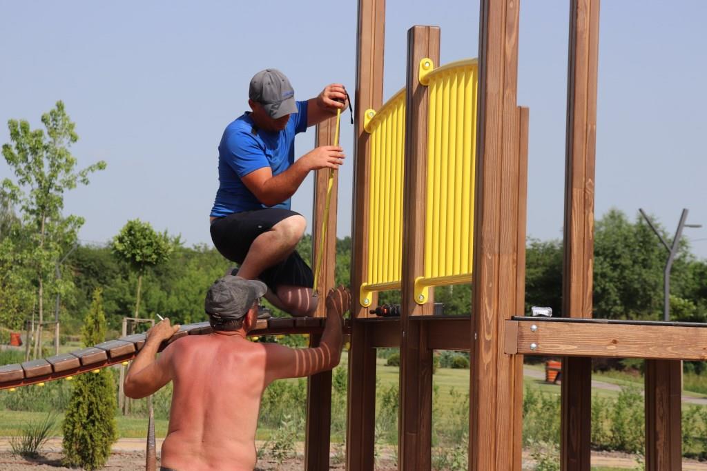 Як обіцяють підрядники, монтаж усіх елементів дитячого майданчика завершать у п’ятницю, 25 червня, а у суботу конструкцію укріплюватимуть бетоном. Після того, як бетон застигне, а на це, як передбачається, піде три дні, майданчик зможе приймати перших маленьких відвідувачів.