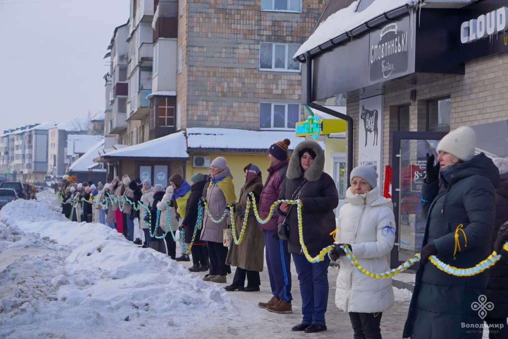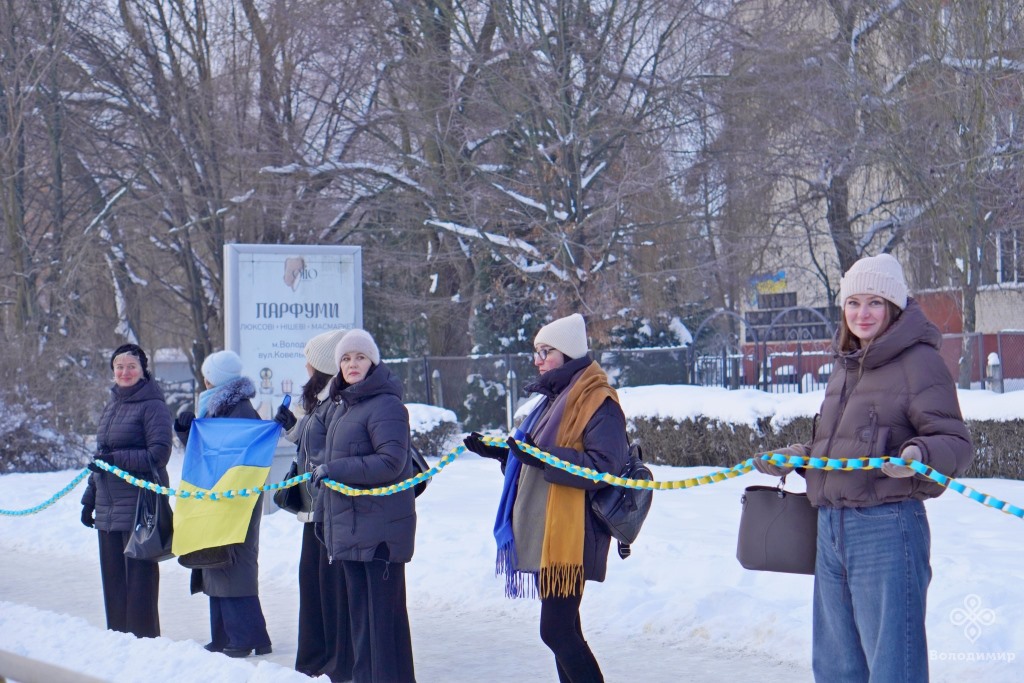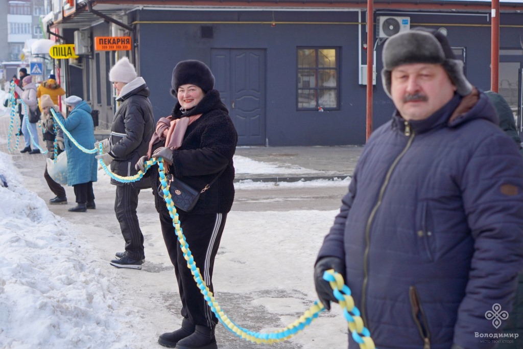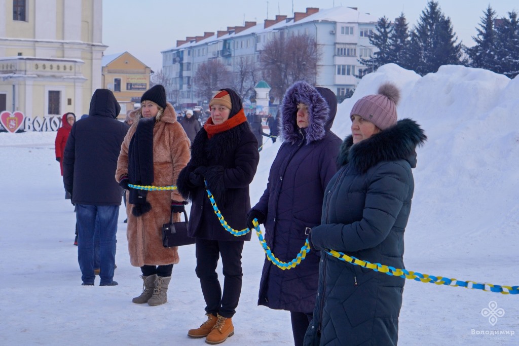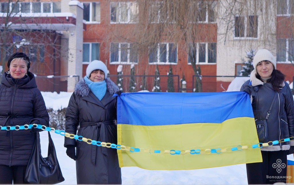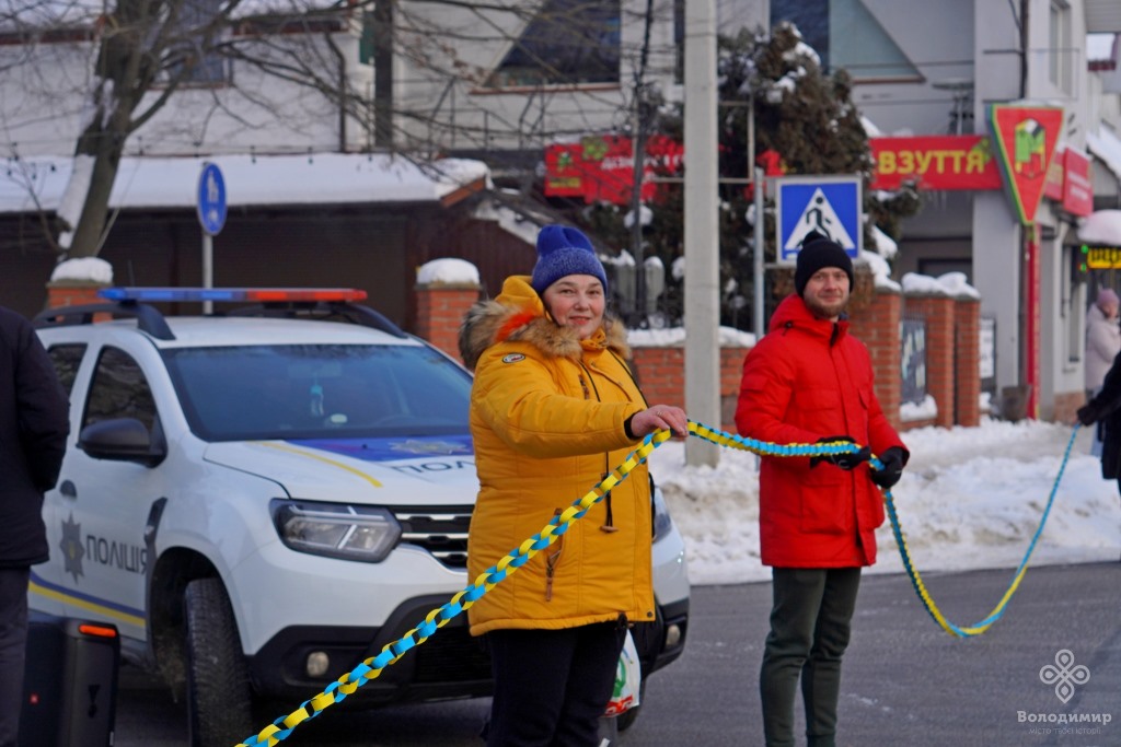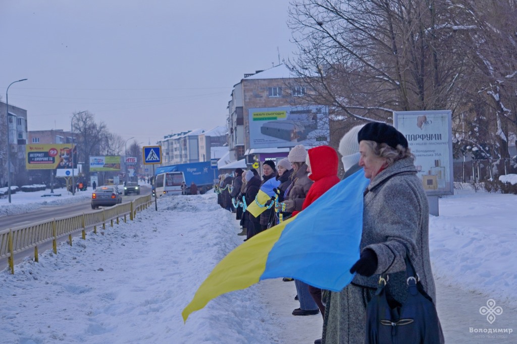 Сьогодні, 22 січня, у День Соборності України, мешканці та гості вийшли вранці на вулиці Володимира та об’єдналися у патріотичній акції, утворивши «Ланцюг єдності».