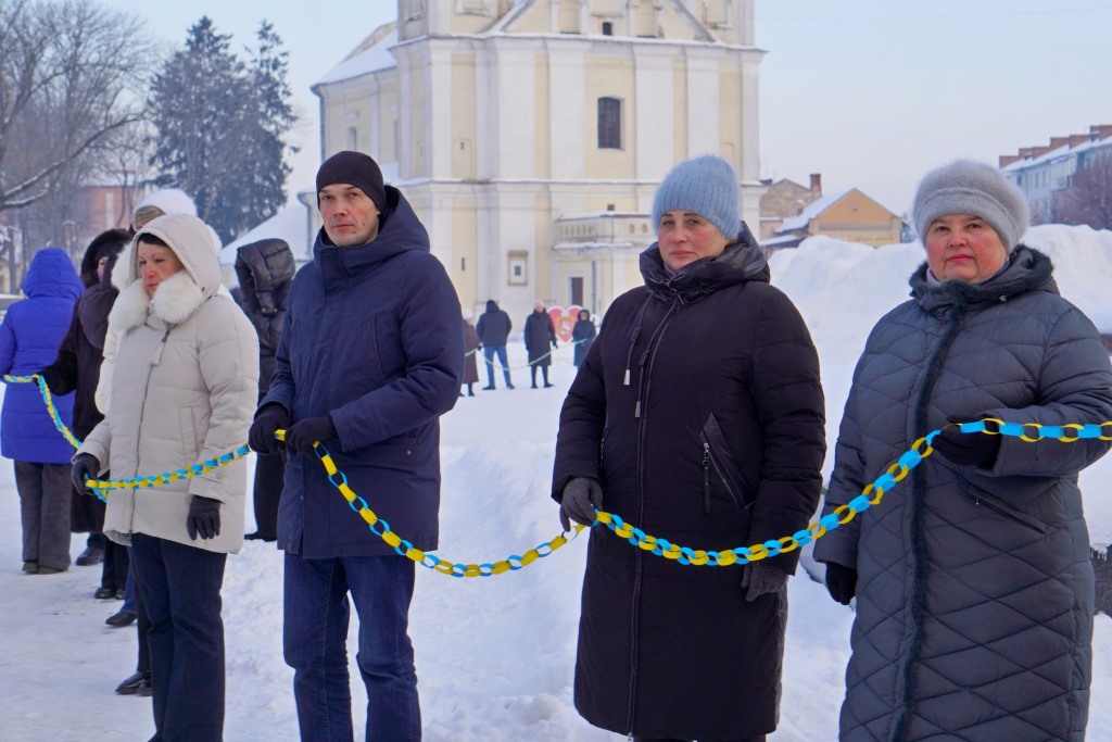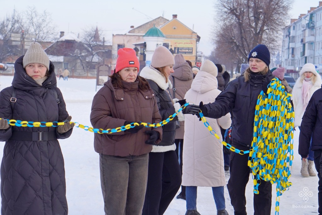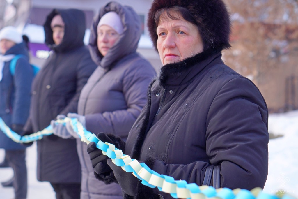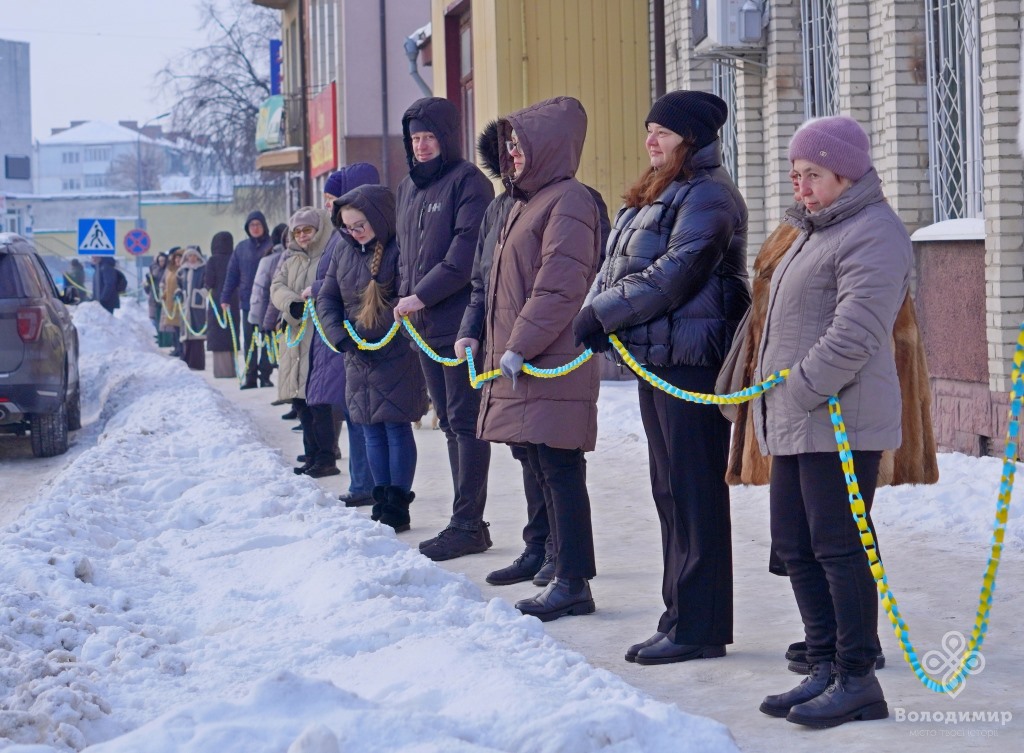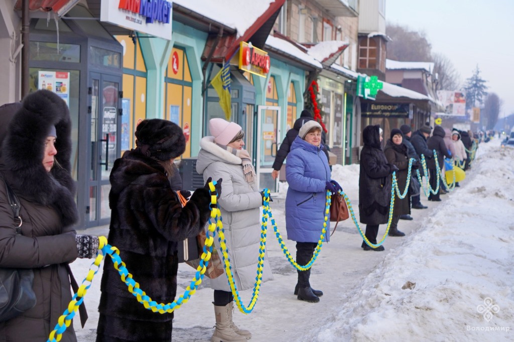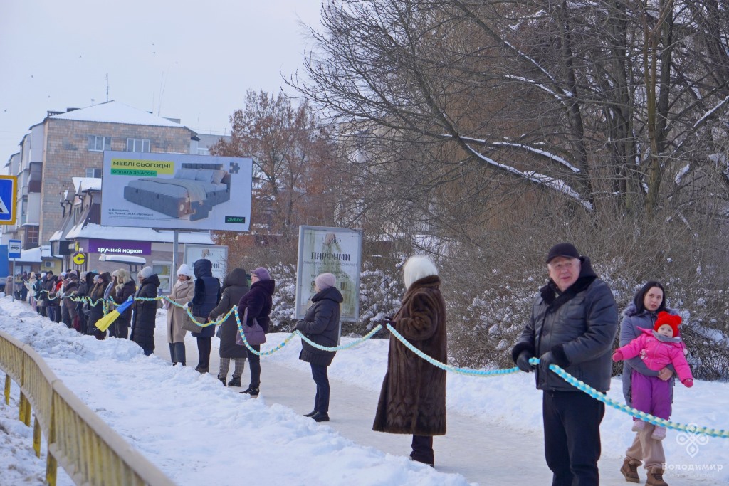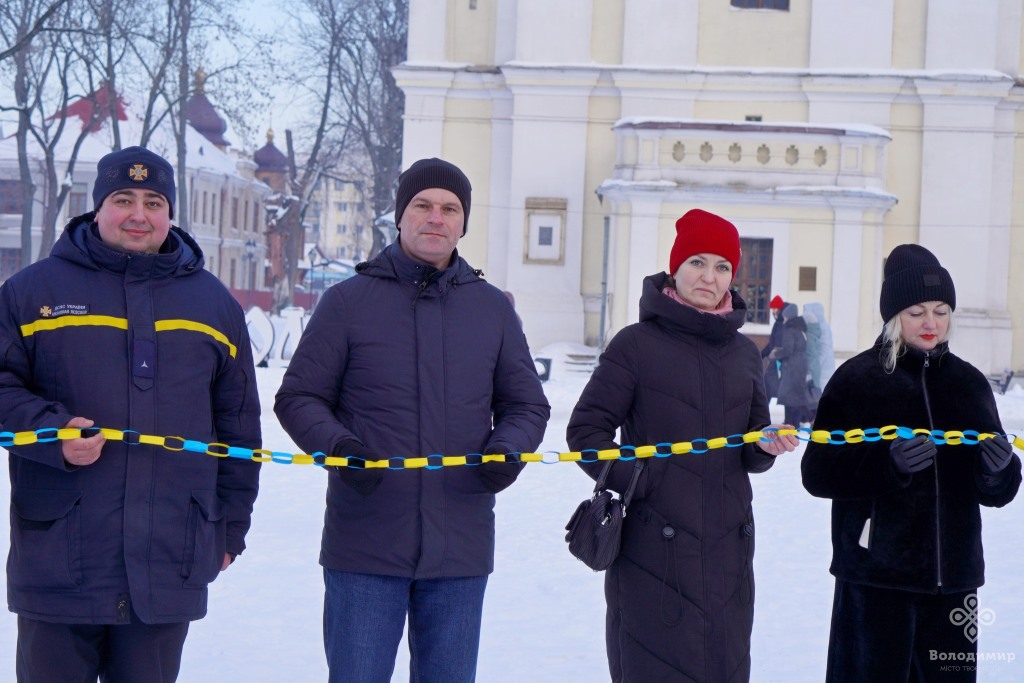 Сьогодні, 22 січня, у День Соборності України, мешканці та гості вийшли вранці на вулиці Володимира та об’єдналися у патріотичній акції, утворивши «Ланцюг єдності».