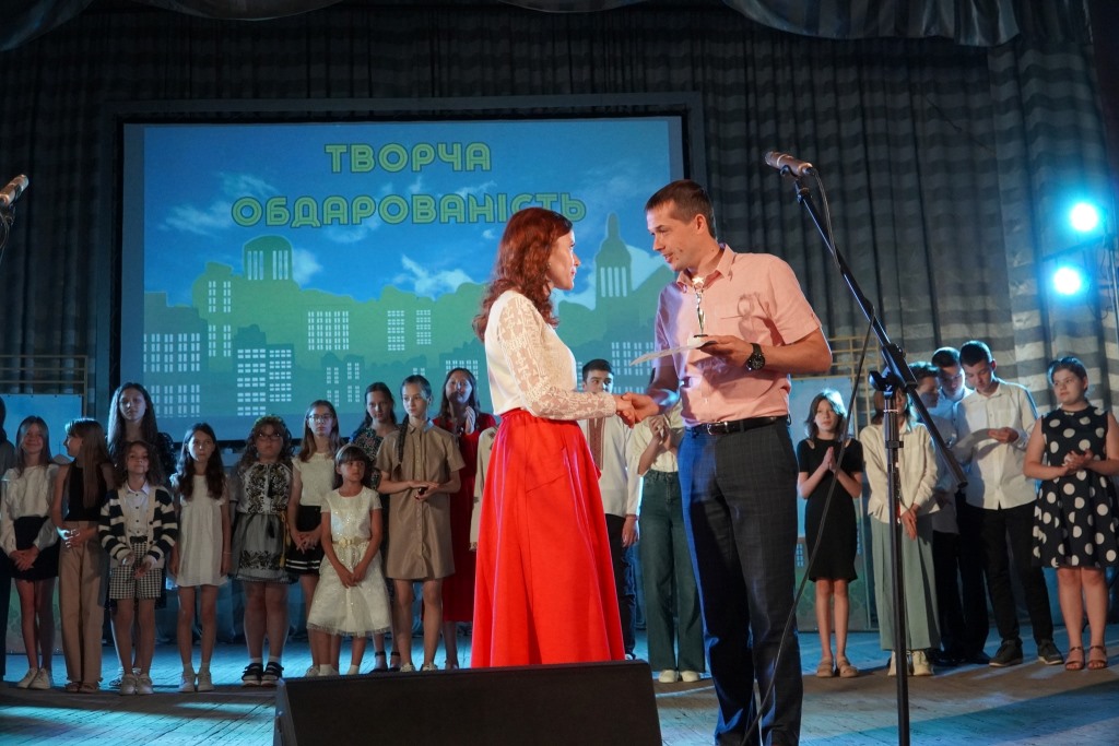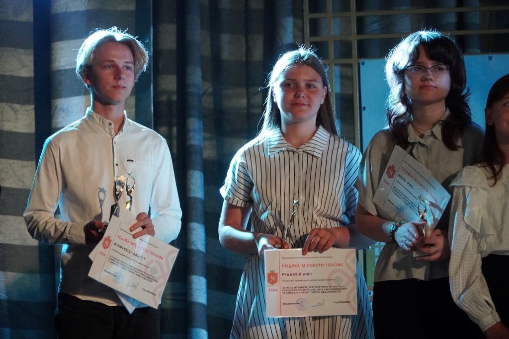 Вручив лауреатам подяки міського голови, грошові винагороди та пам’ятні статуетки “Творча обдарованість 2024” заступник міського голови Андрій Гудим. Він подякував усім талановитим учням за їхні старання, що дали відповідні плоди, вчителям за кропітку працю попри тривоги та інші негаразди та батькам за підтримку та віру у своїх дітей.