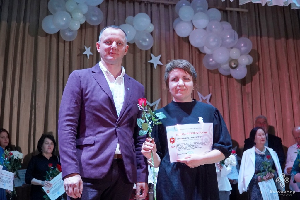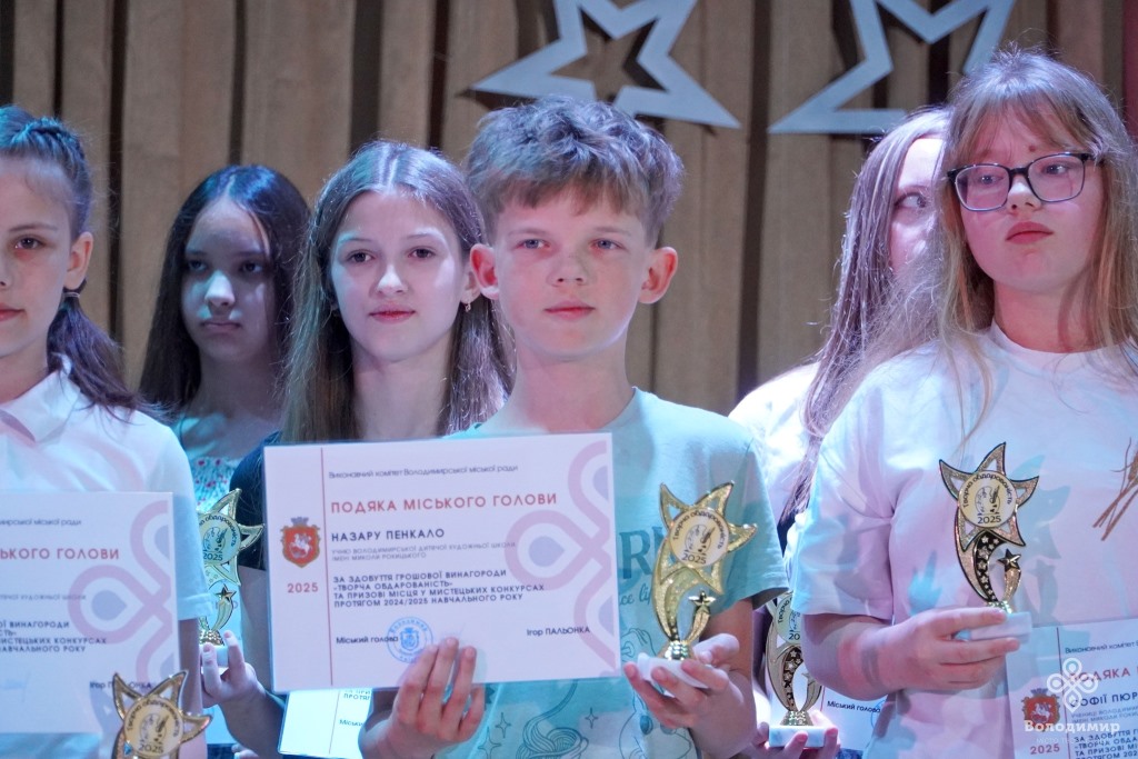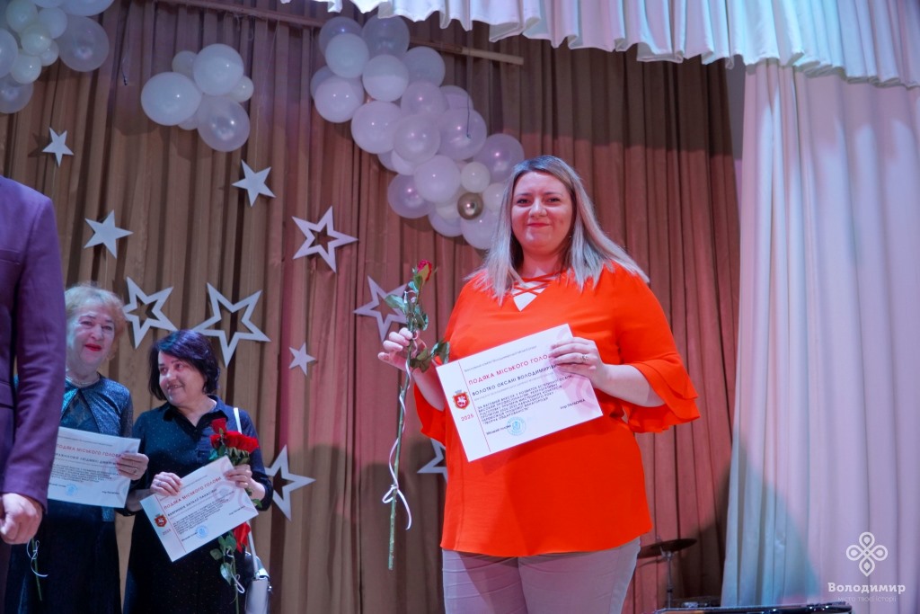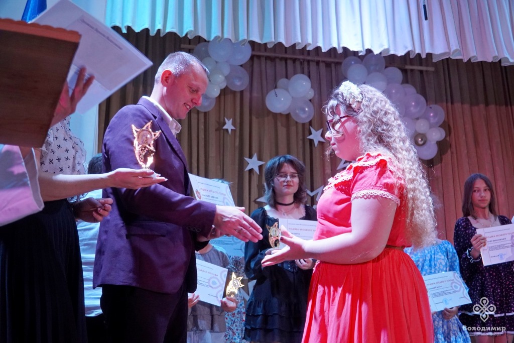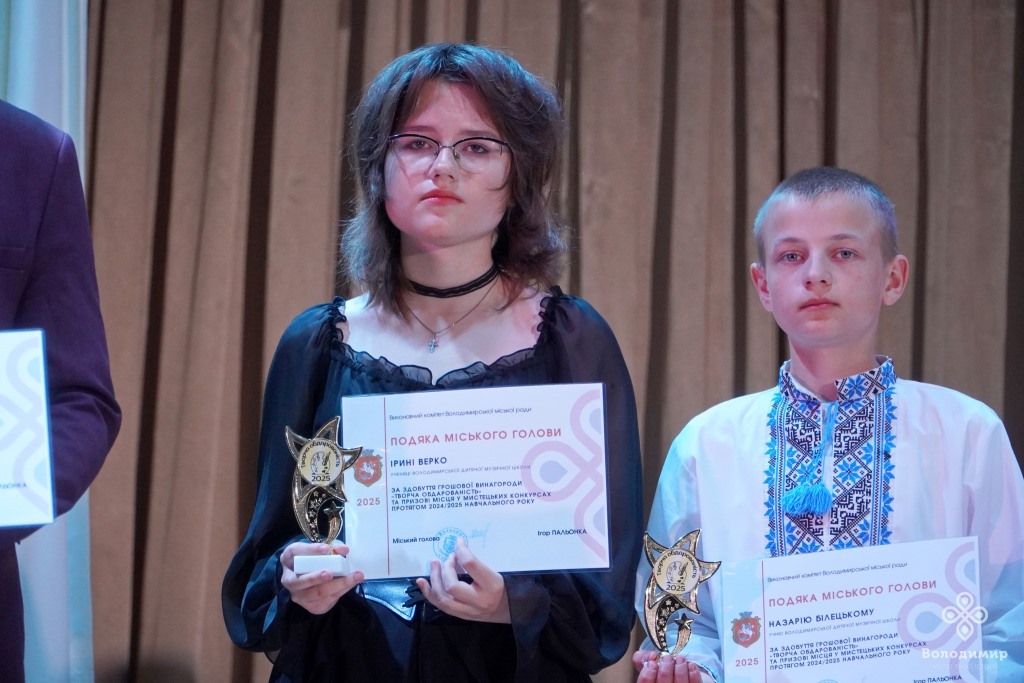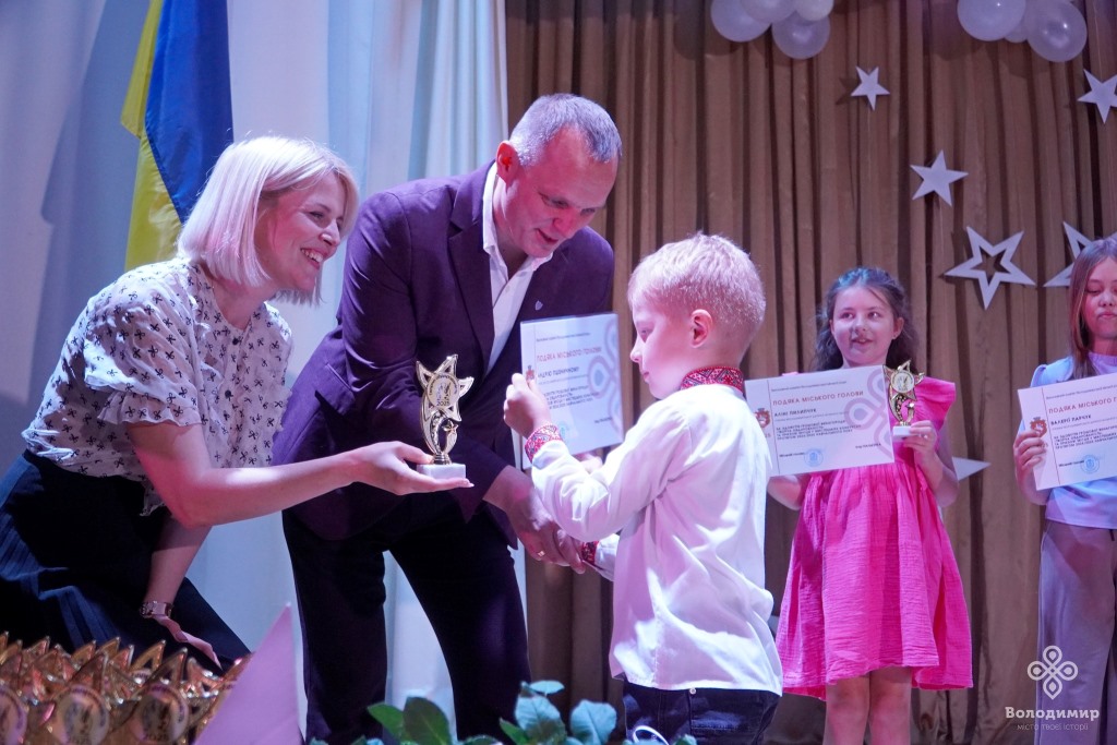 Після привітань очільниця відділу культури і мистецтва Олена Омелюх та Іван Юхимюк вручили Подяки міського голови, грошові винагороди, статуетки «Творча обдарованість» 52-ом учням Володимирської дитячої музичної школи та 107 учням Володимирської дитячої художньої школи імені Миколи Рокицького.
