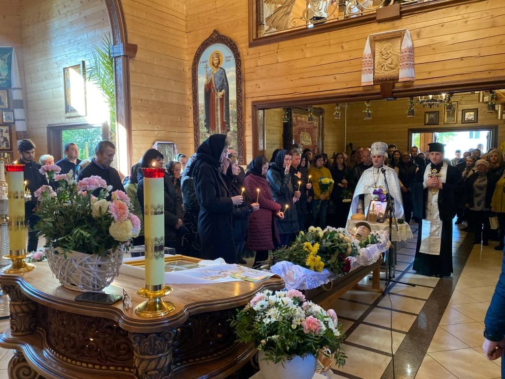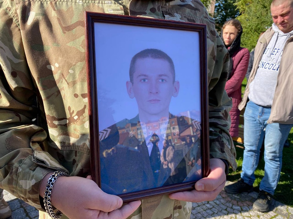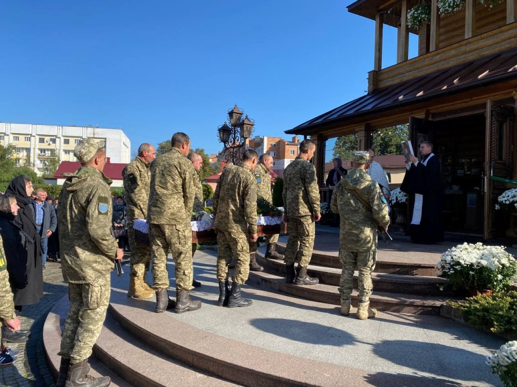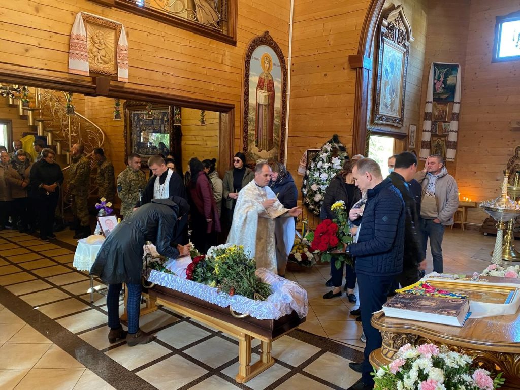Містяни віддали останню шану земляку, зустрівши жалобний кортеж навколішки та із прапорами у руках. Чин похорону, на якому були присутні рідні, друзі, побратими, та усі небайдужі мешканці, відбувся у храмі Віри, Надії, Любові та матері їх Софії.