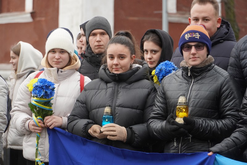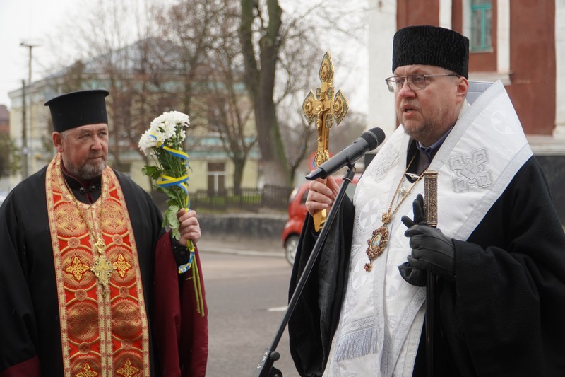 Після урочистої частини заходу представники влади, святі отці, учасники Майдану з Володимира, молодь і старші мешканці міста понесли до символічної пам’ятної стели лампадки і квіти.
