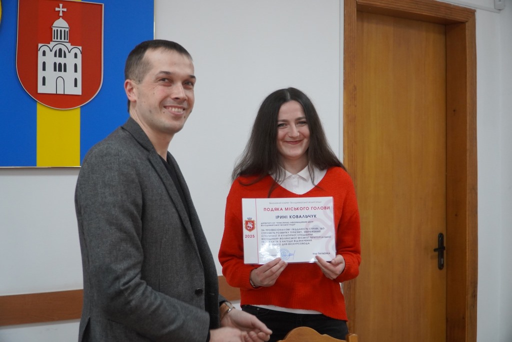 – Ірині Ковальчук – директорці Комунального підприємства «Туристично-інформаційний центр Володимирської міської ради».
