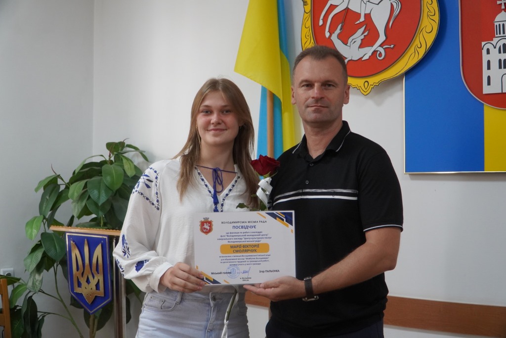 12 серпня у залі засідань Володимирської міської ради з нагоди Міжнародного дня молоді Володимирський міський голова Ігор Пальонка вручив посвідчення обдарованій молоді громади, що стала лауреатами стипендії «Майбутнє Володимира», а також сертифікати на виплату премій цьогорічним випускникам, які отримали по 200 балів у національному міжпредметному тесті.