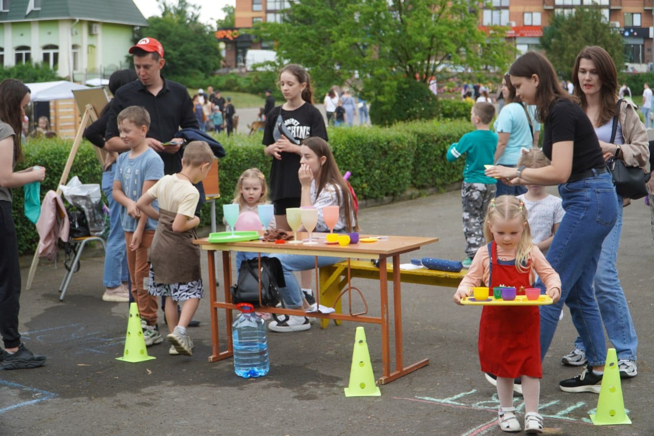 Навіть дощ, що час від часу починав накрапати, не завадив дитячим намірам весело і цікаво провести цей день. На різних локаціях було людно та гамірно. Найменші мешканці громади з батьками, а трохи старші — веселими дитячими компаніями дружно розважались.