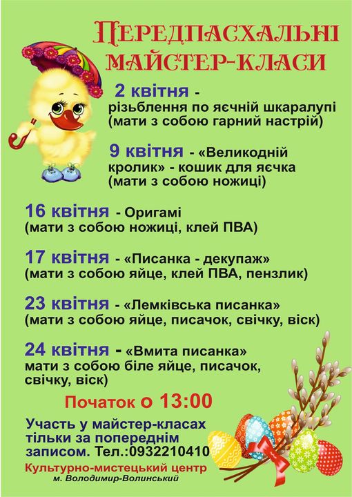 У Володимирі-Волинському проведуть серію передпасхальних майстер-класів.