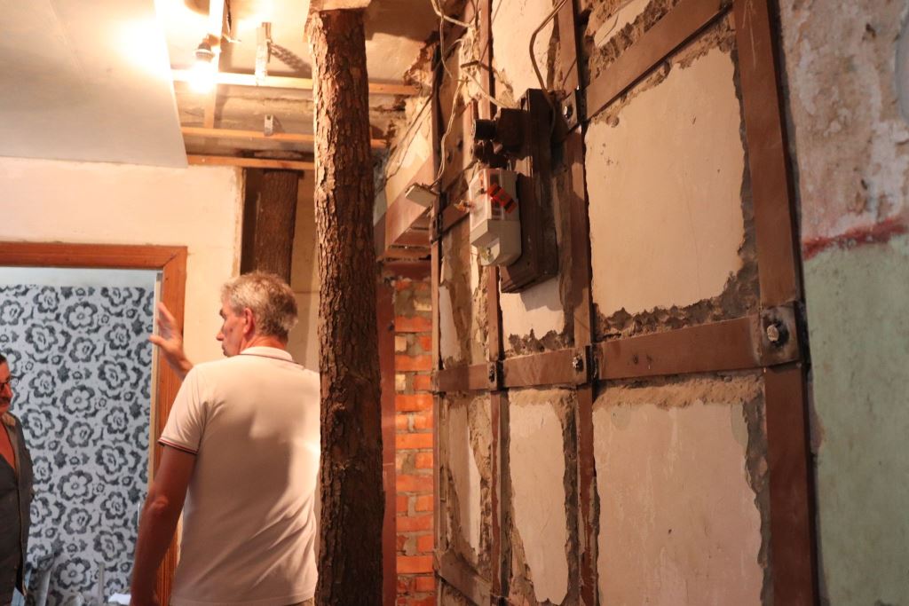 Опісля проінспектували будинок на вулиці Івана Франка, 4, де зараз проводяться роботи з укріплення у п’яти квартирах. У першій квартирі, яка була у найгіршому стані, вже закінчуються роботи, а у решті невдовзі планується проведення зовнішнього укріплення, однак місце перебування власника однієї з квартир наразі встановлюється. Також заступник міського голови порушив питання стосовно підбору якомога міцніших матеріалів, який має здійснити проектна група.