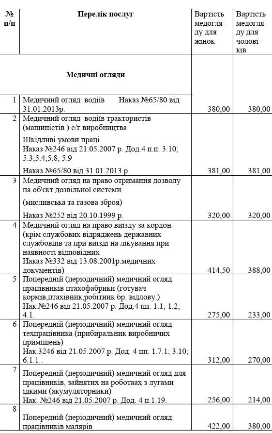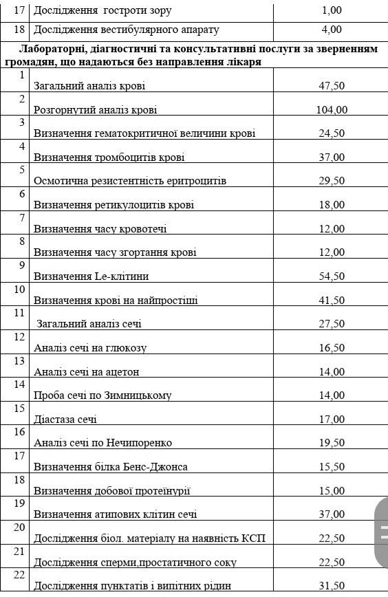 Виконавчий комітет затвердив перелік і тарифи на платні медичні послуги, які надаються у Володимир-Волинському ТМО.