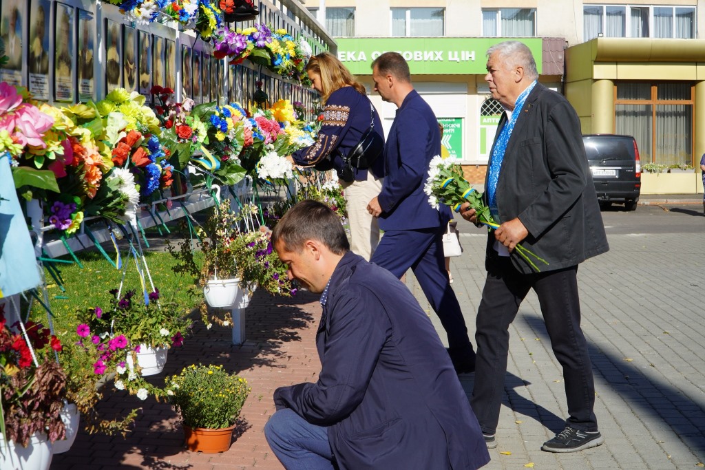 Вшанувати загиблих та покласти квіти до Дошки пам’яті полеглих Героїв-земляків прийшли міський голова Ігор Пальонка із заступниками, гості з Німеччини: очільниця німецького міста-партнера Цвікау Констанс Арндт, голова Асоціації «Партнерство для України» Карл-Ернст Мюллер та небайдужі володимирчани.