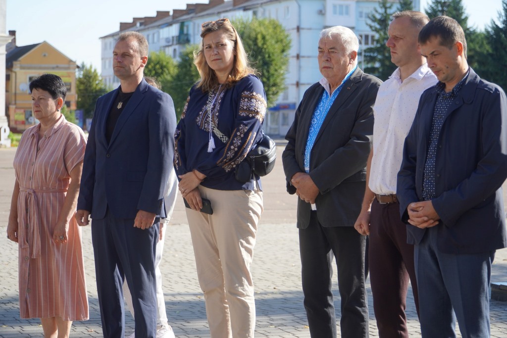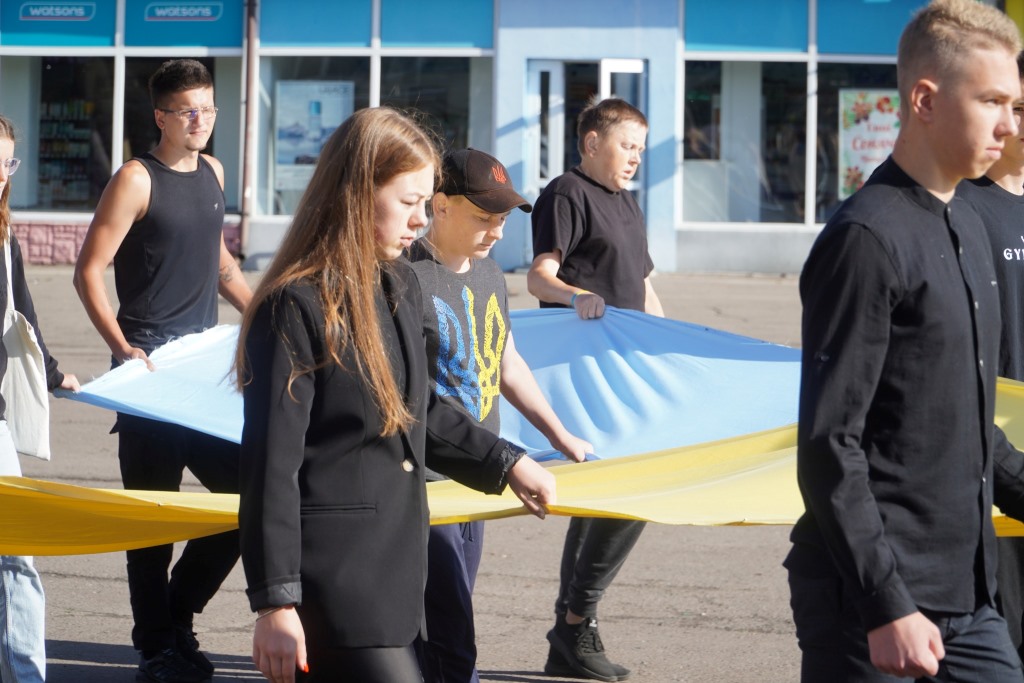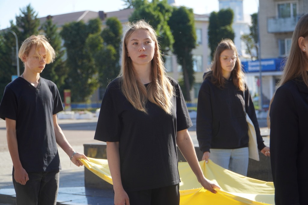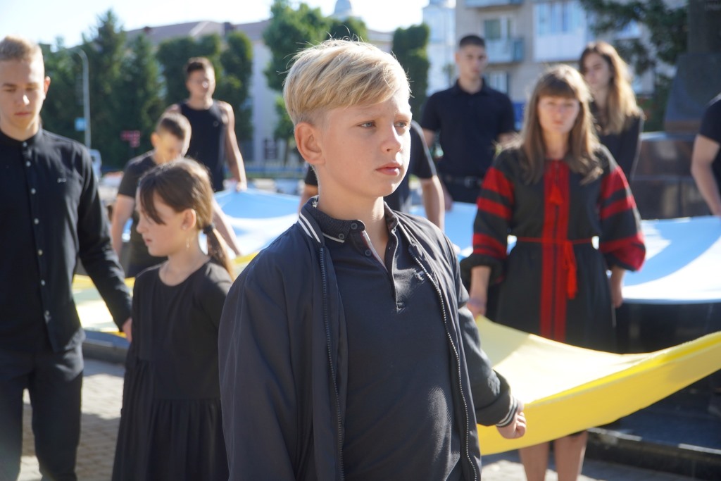 Перед початком пам’ятного заходу у Володимирі через усю площу пройшла молодь із великим українським прапором та інформаційним плакатом, аби привернути увагу городян до цієї трагічної дати та нагадати, що війна триває і ми у великому боргу перед нашими захисниками