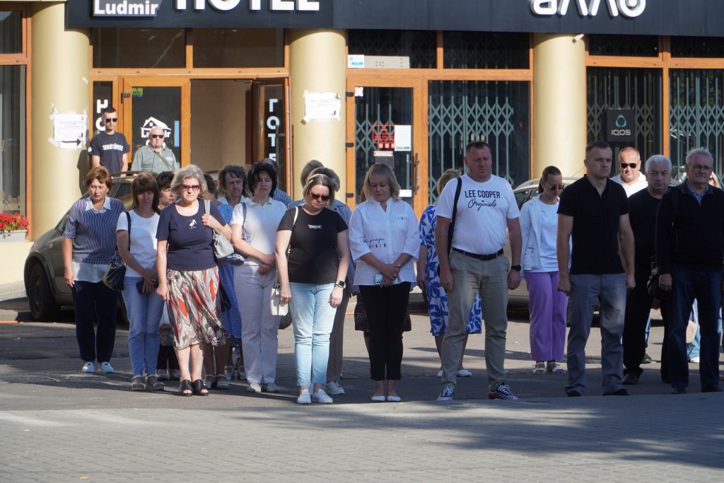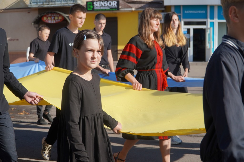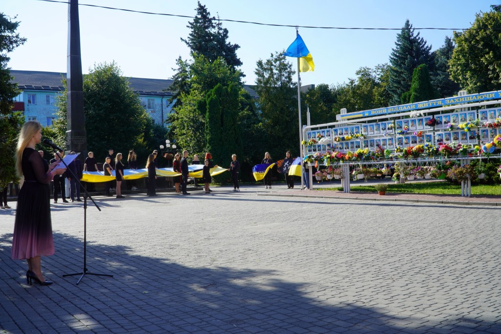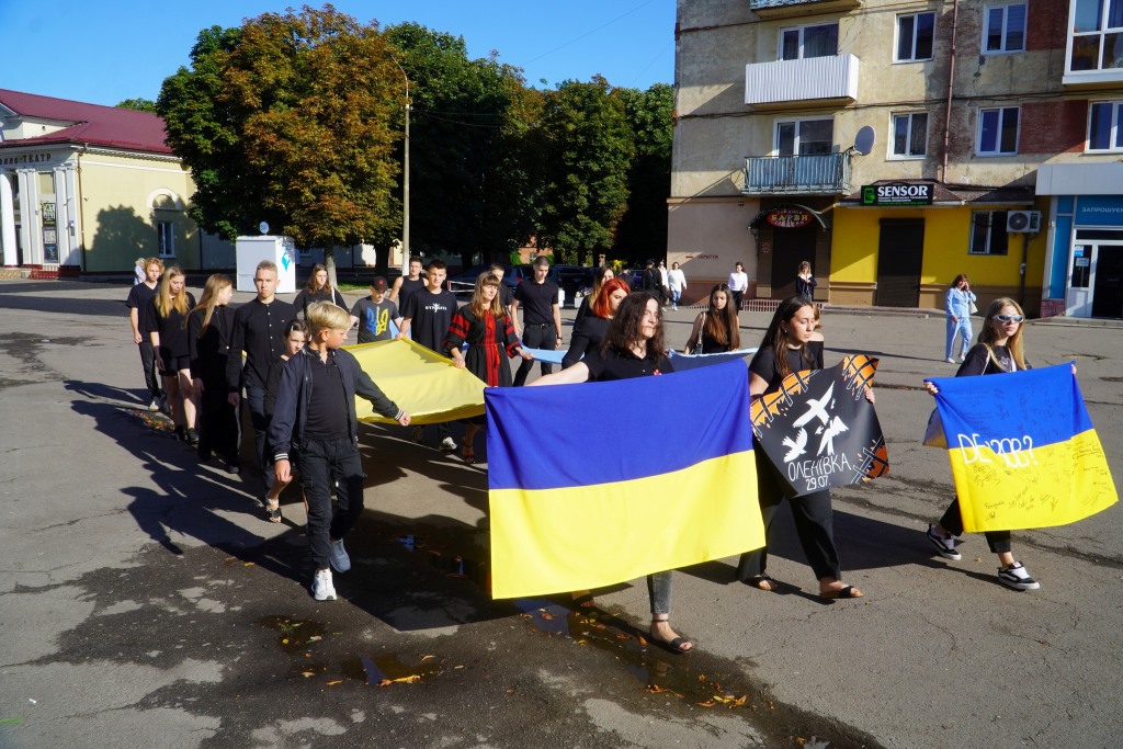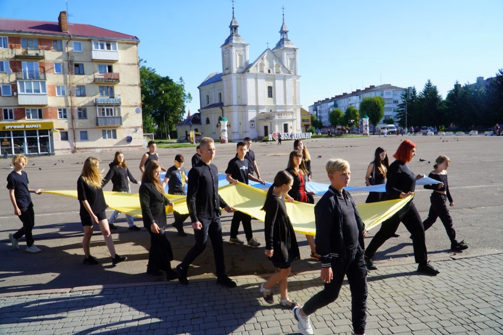 Перед початком пам’ятного заходу у Володимирі через усю площу пройшла молодь із великим українським прапором та інформаційним плакатом, аби привернути увагу городян до цієї трагічної дати та нагадати, що війна триває і ми у великому боргу перед нашими захисниками