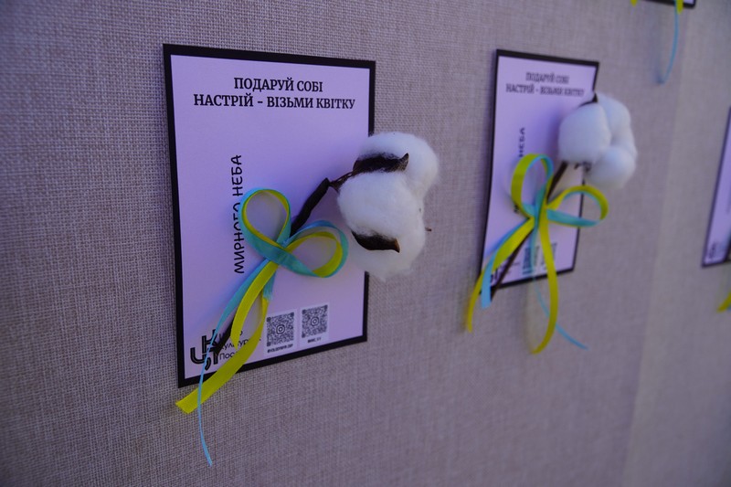 “Разом із побажанням мирного неба на листівці – гілочка бавовни в обрамленні жовто-блакитних стрічок. Квітка бавовни віднедавна стала своєрідним символом надії, адже від кожного випадку «бавовни» в розташуванні наших ворогів розквітає щире українське серце, а душа наповнюється сподіванням на якнайшвидшу Перемогу і на повернення додому наших захисників і захисниць”, – йдеться у повідомленні.