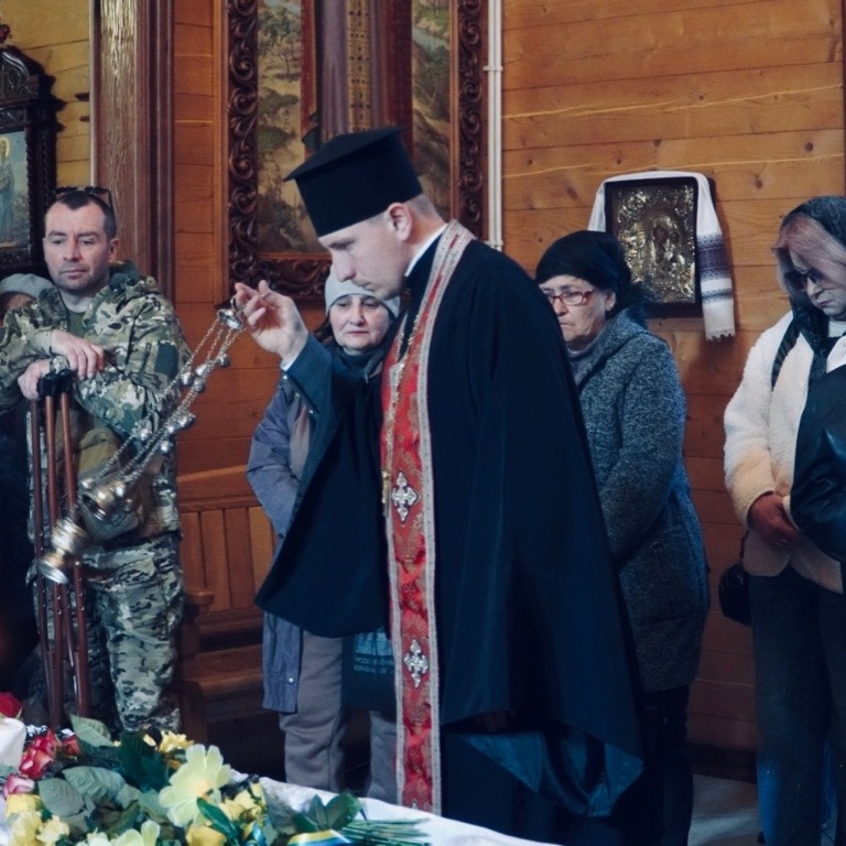 «Попрощатись із Русланом Петровичем у храм Віри, Надії, Любові та їх матері Софії прийшли рідні, близькі, побратими та небайдужі жителі громади, які зі сльозами на очах проводжали мужнього воїна.