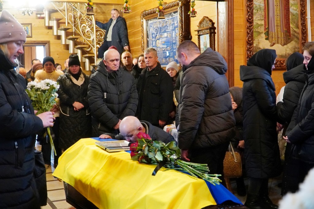 У храмі Святих Віри, Надії, Любові та їх матері Софії священники відслужили панахиду за упокій душі воїна. Плакали рідні, схиляли коліна близькі, друзі та знайомі, клали незліченну кількість квітів до домовини, як останній дарунок та знак шани Герою. У воїна залишились дружина, двоє доньок, рідна сестра, яких уже із неба оберігатиме їхній чоловік, батько та брат, будучи надійним щитом та охоронцем зверху.