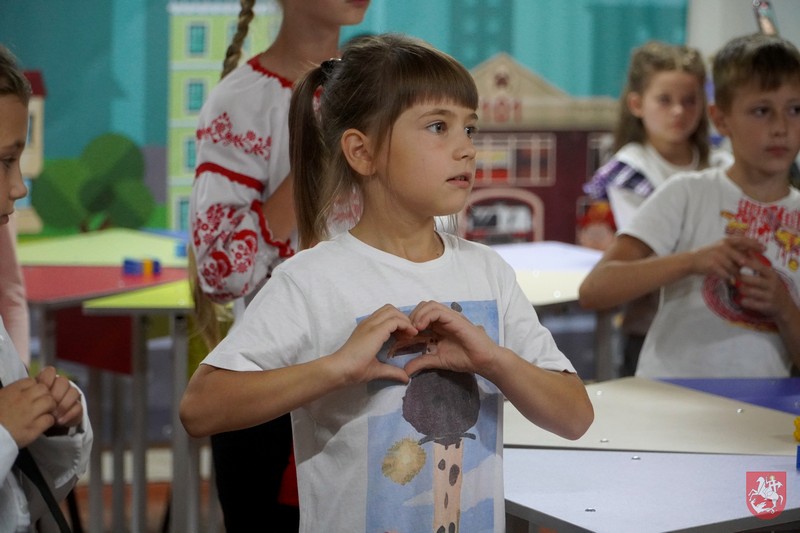 На відкритті класу безпеки учні-третьокласники ліцею № 1 розповідали тематичні вірші та демонстрували веселі руханки, які допомагають дітям в ігровій вивчати алгоритм дій під час оголошення повітряної тривоги.