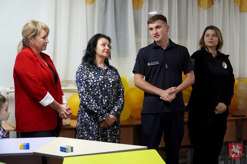 Гості, які завітали на цю подію до навчального закладу – начальниця відділу освіту Наталія Митошоп, провідний інспектор Володимирського РУ ГУ ДСНС Станіслав Троцюк та інспектор ювенальної поліції Євгенія Мацнєва, – побажали дітям отримати у класі безпеки багато корисних знань та щасливого дитинства під мирним небом України.