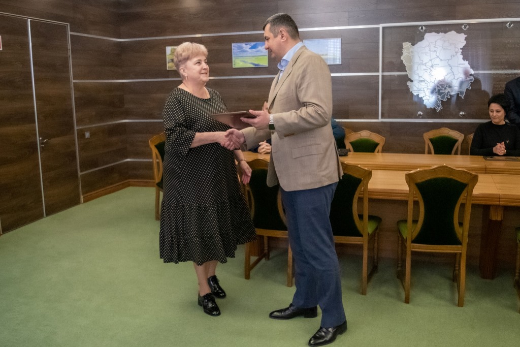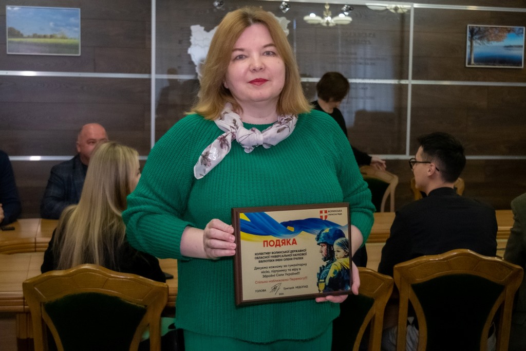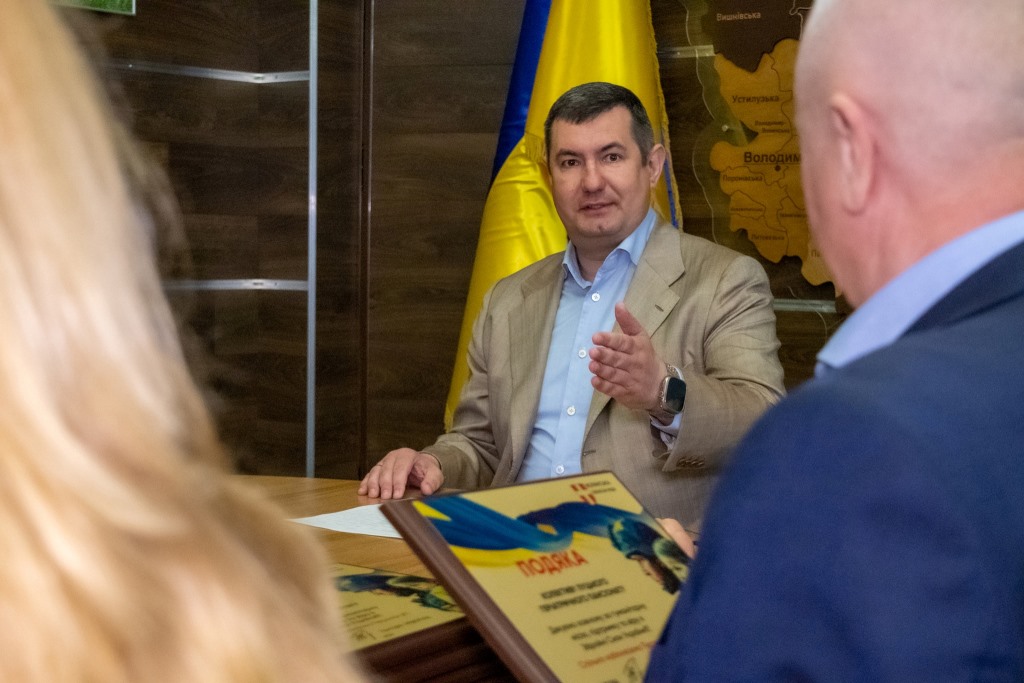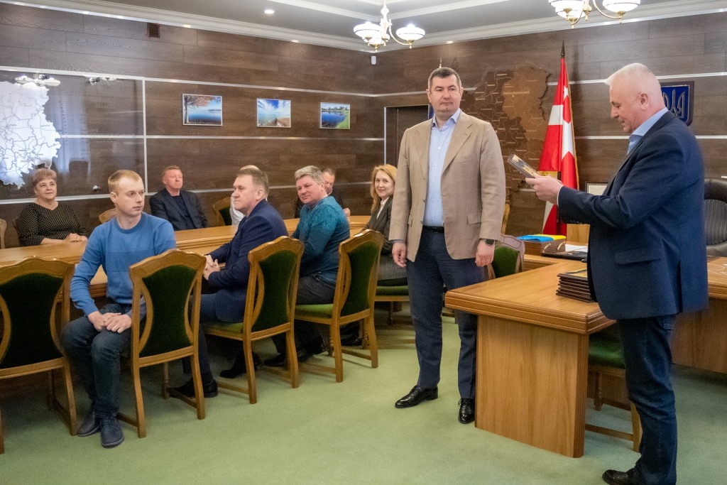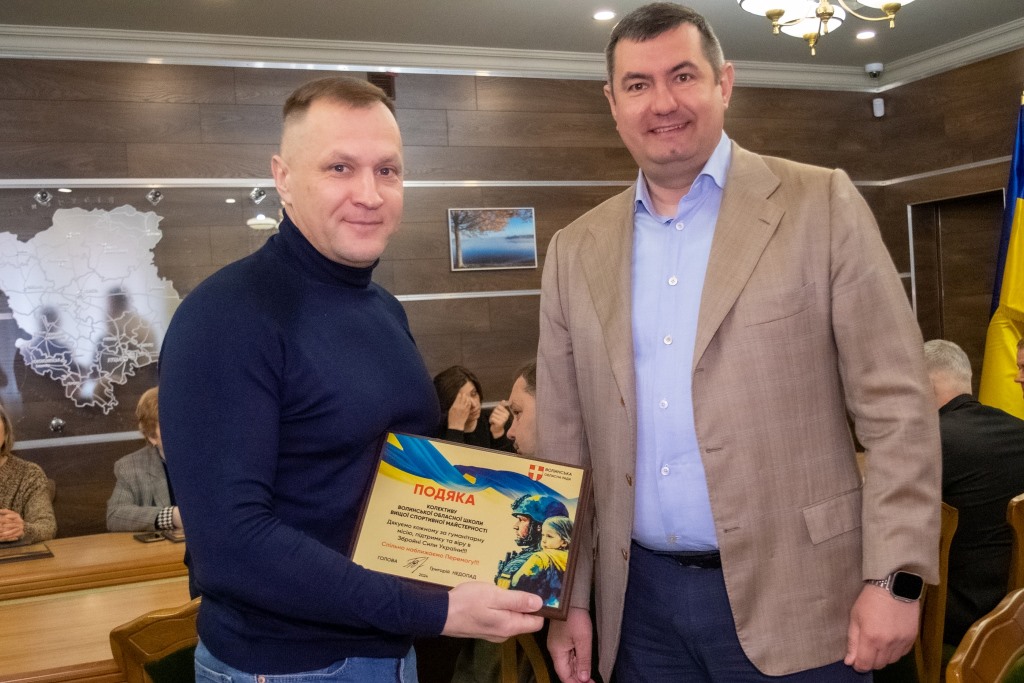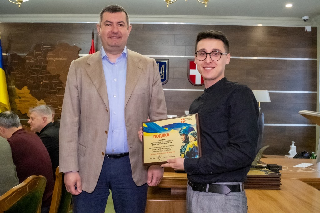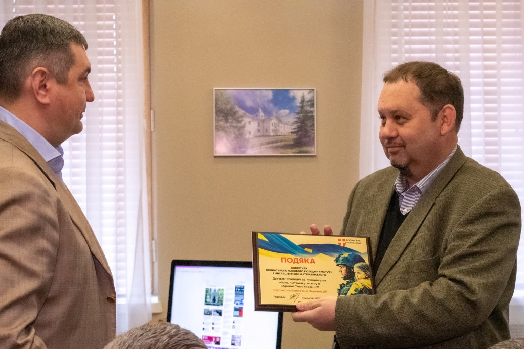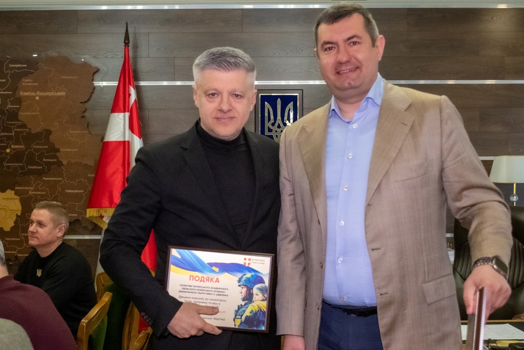 Очільник Волиньради вручив керівникам колективів пам’ятні гравертони і закликав продовжувати допомагати фронту.