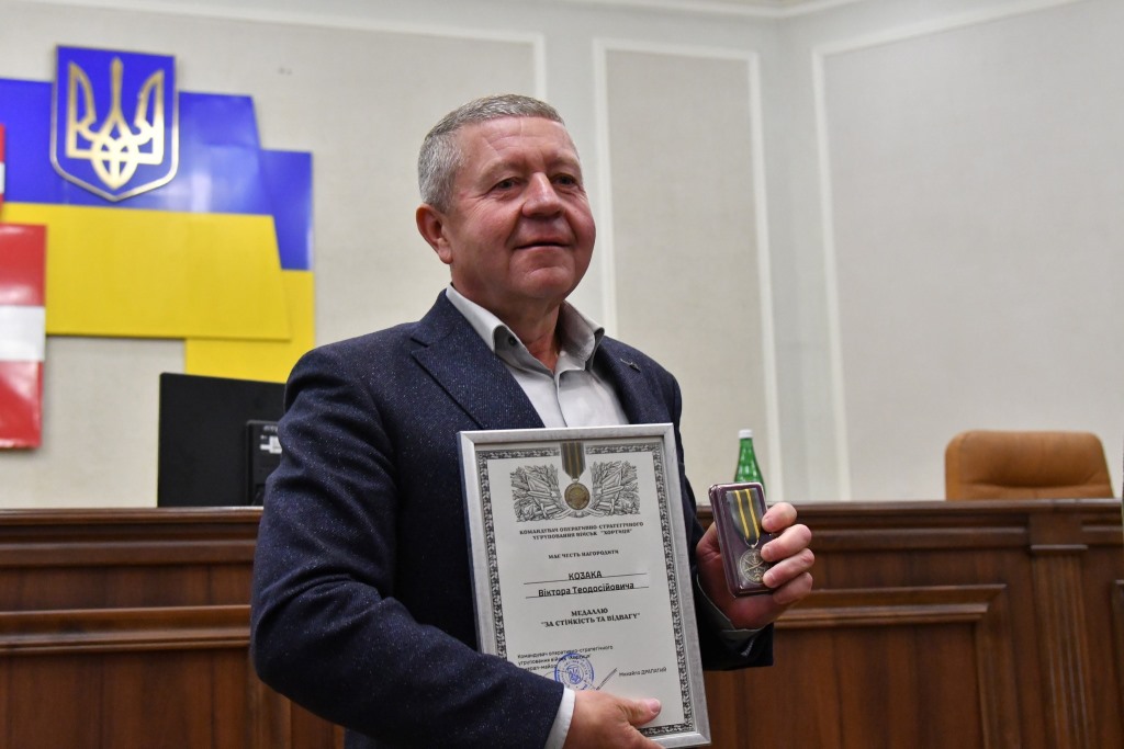 Відповідно до наказу командувача оперативно-стратегічного угруповання військ «Хортиця» генерал-майора Михайла Драпатого, голова облради вручив медаль «За стійкість та відвагу» депутатові обласної ради Віктору Козаку.