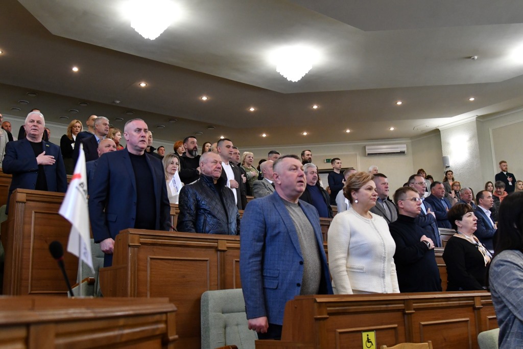 Традиційно засідання розпочалося зі спільного виконання Гімну та пошанування хвилиною мовчання полеглих за незалежність і цілісність України.