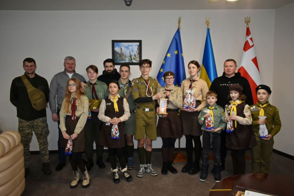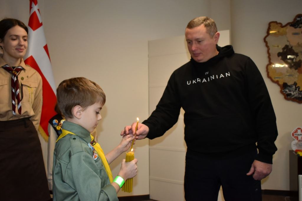 «Отримав його від пластунів Волині. Традиції передавати вогонь спочатку між скаутами світу, а потім усім, хто його потребує – двадцять років. Наразі вона важлива як ніколи, тому щиро вдячний скаутам за її продовження.