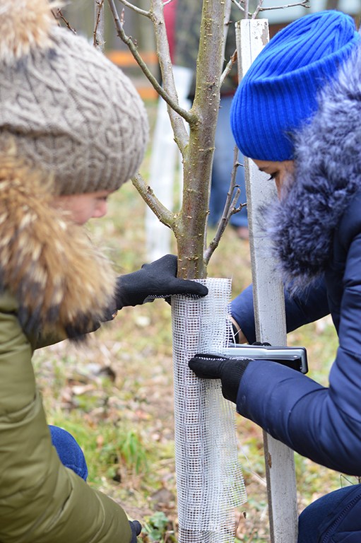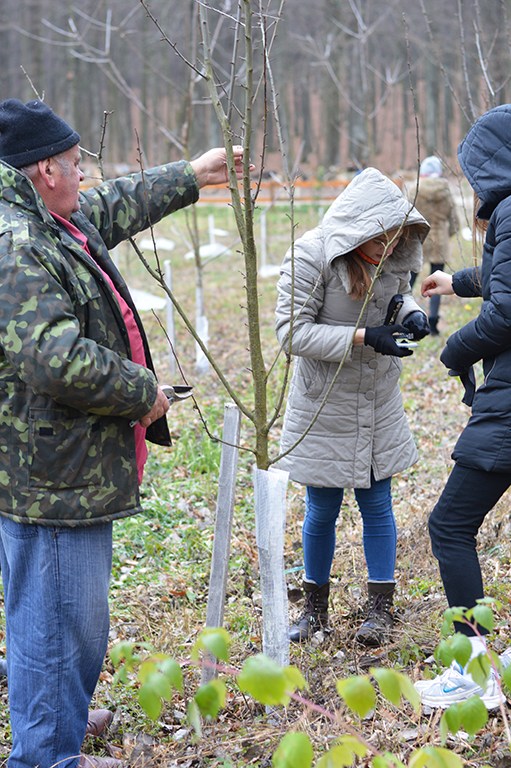 Лісівники та студенти-біологи на чолі із своїм наставником, професором Східноєвропейського національного університету імені Лесі Українки Михайлом Шевчуком, отримали змогу поєднати практику та лекцію: разом захищали стовбури сіткою із дрібним осередком та проводили обрізку фруктових дерев.