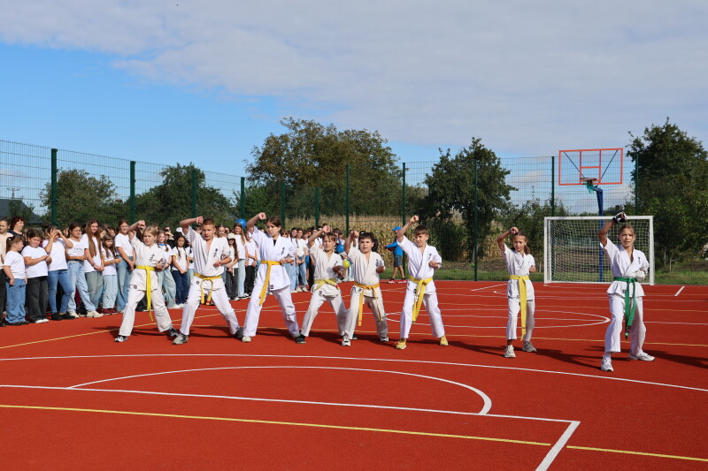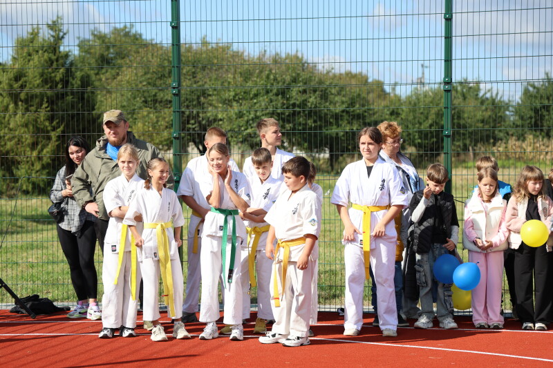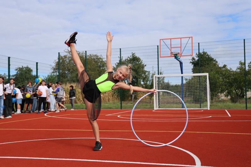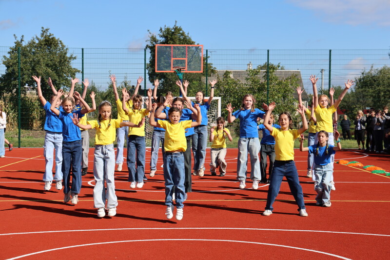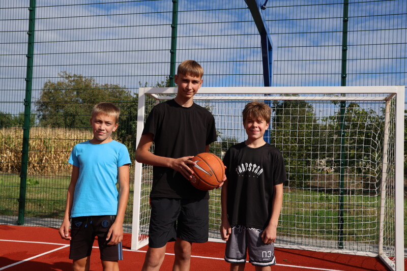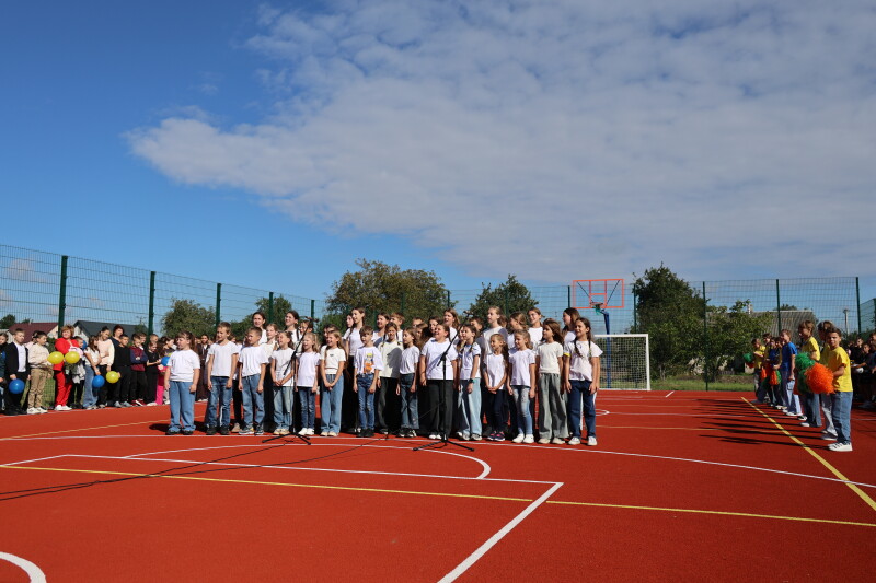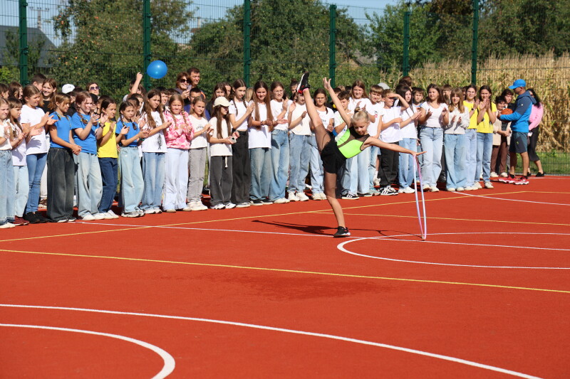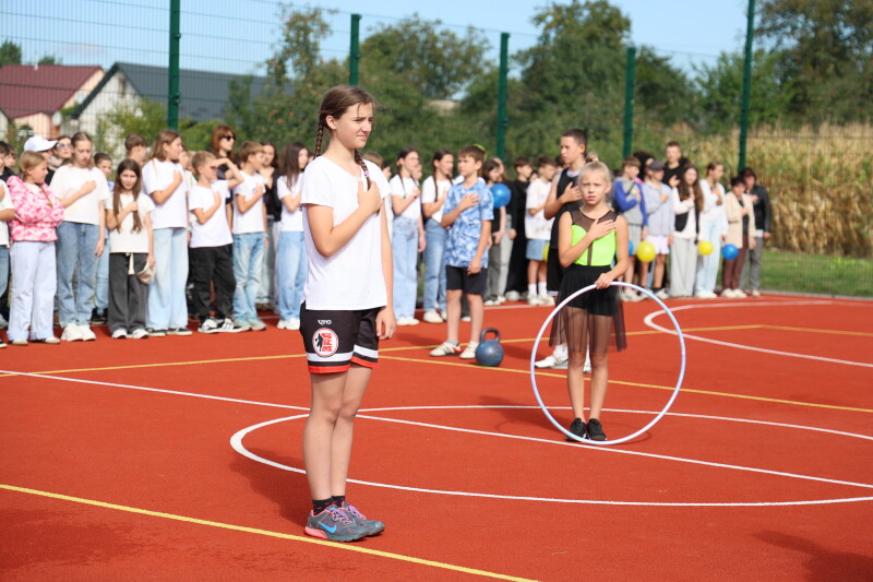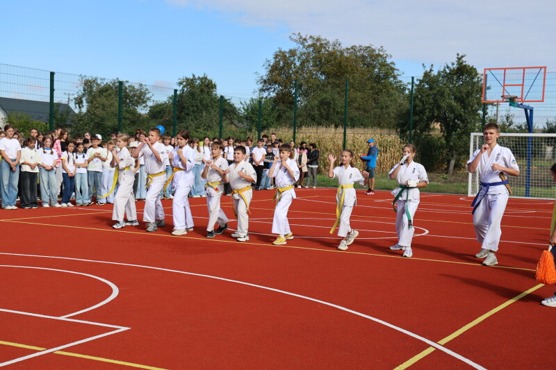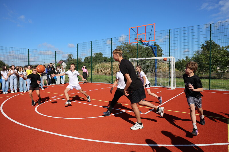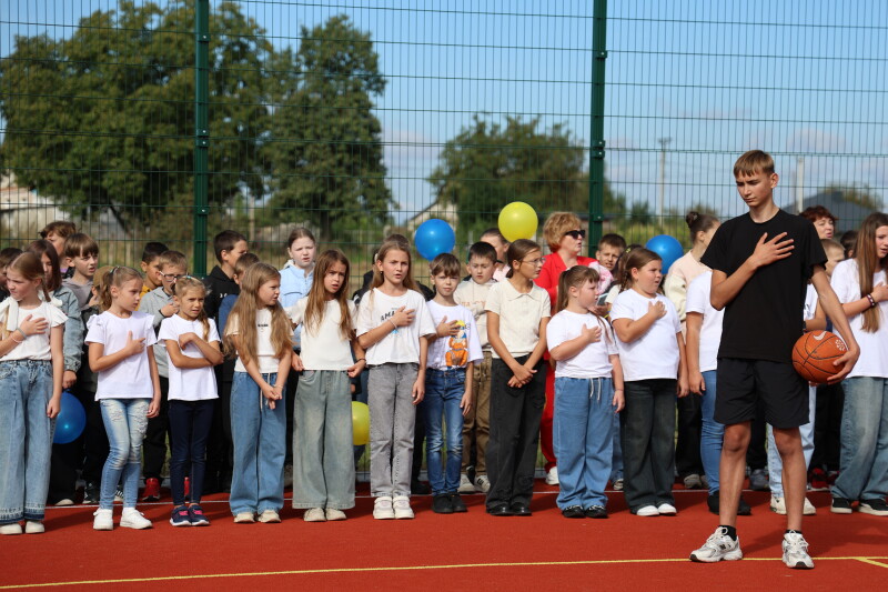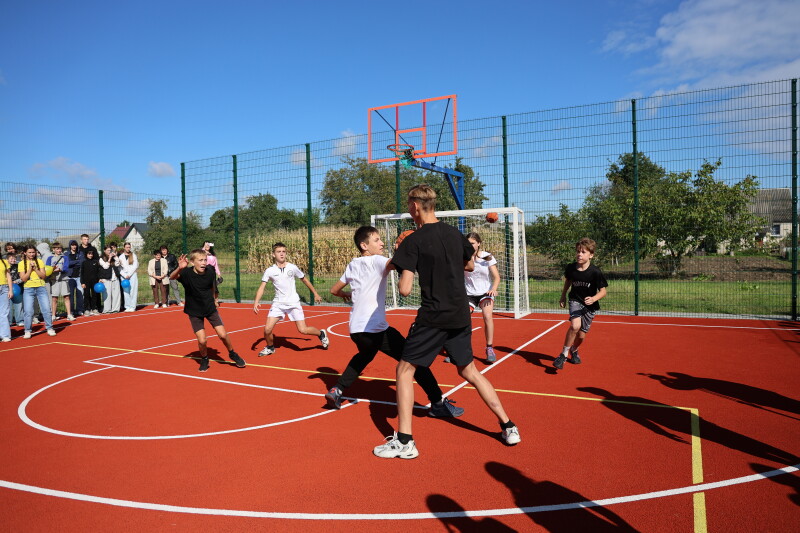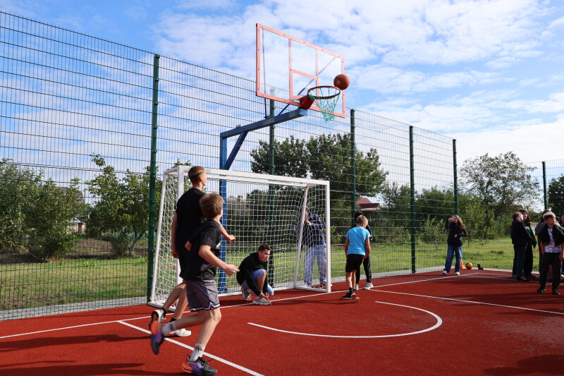 Під час урочистостей з нагоди відкриття школярі продемонстрували на новому полі свої спортивні здібності, разом з директором зіграли показовий виступ зі стрітболу.