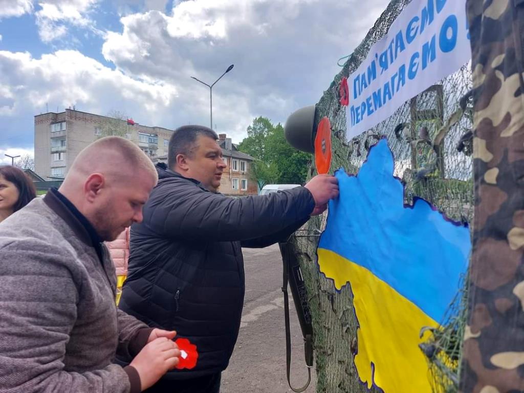 Червоні маки, як символ пам’яті жертв війни, учасники прикріплювали на мапу України на знак вшанування воїнів-героїв минулої і сьогоднішньої воєн. Маємо пам’ятати кожного, хто віддав своє життя за Батьківщину.
