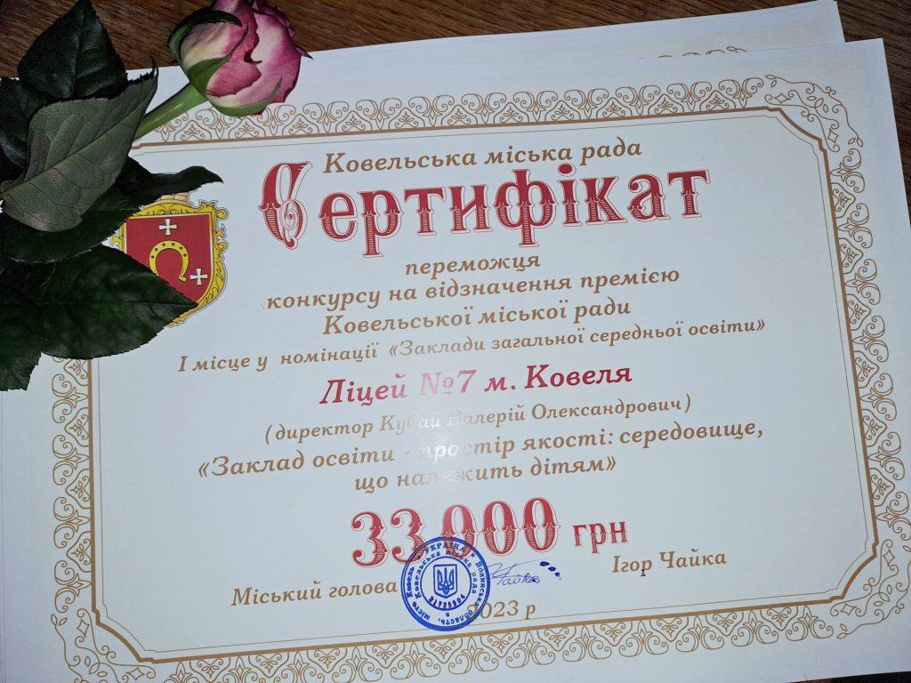 Сертифікати на суму 24 тисячі гривень переможцям вручили Ковельський міський голова Ігор Чайка та його заступник Наталія Маленицька.