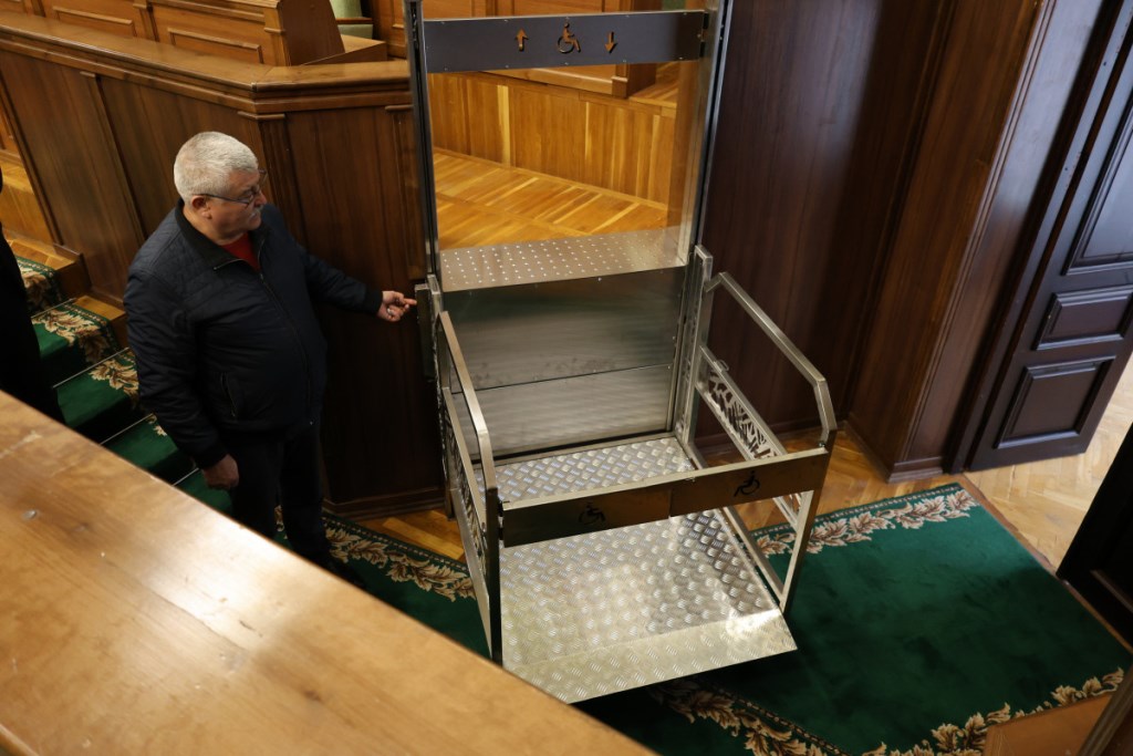 Станом на сьогодні вже встановлені два підйомники – один до сесійного залу, інший безпосередньо в його приміщенні. Це дасть змогу людям, які пересуваються на кріслах колісних, безперешкодно брати участь у сесійних засіданнях та інших заходах. Роботу підйомників протестували в дії, технічні можливості перевірили фахівці управління містобудування та архітектури облдержадміністрації спільно з працівниками обласної ради.