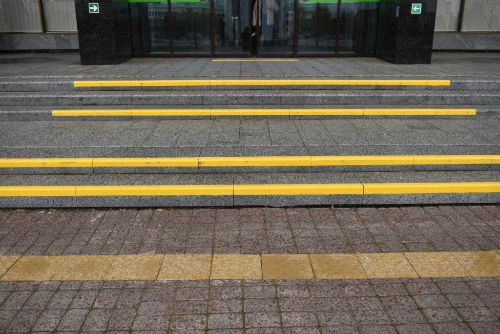 Також у будівлі провели низку робіт: нанесене контрастне маркування жовтим кольором, у ліфтах з’явилися таблички зі шрифтом Брайля, мінімізовані пороги вхідних дверей, перед входом та сходами облаштовано тактильну плитку з рельєфними елементами для орієнтування людей із порушеннями зору.