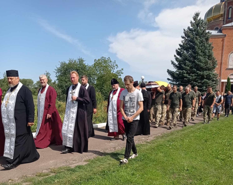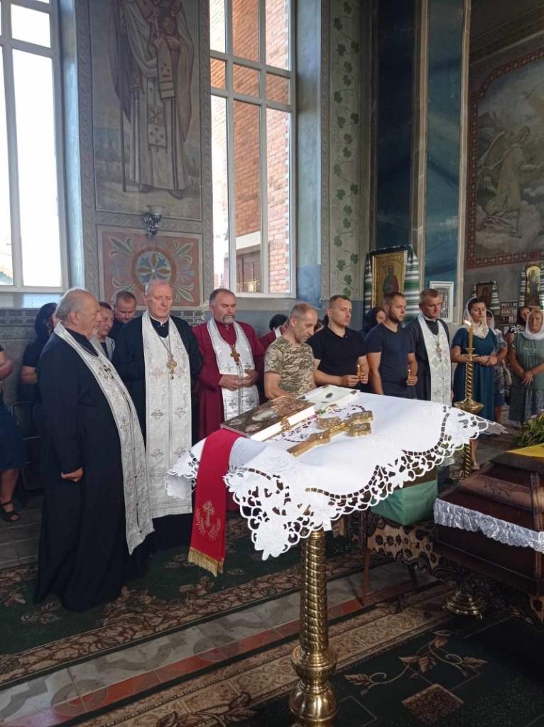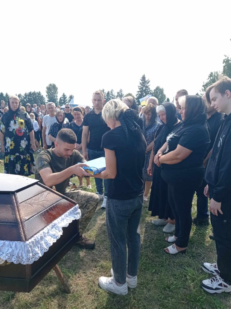 На церемонію прощання з траурними квітами та державною символікою прийшли представники громади, військового комісаріату, друзі, знайомі загиблого, військовослужбовці та просто небайдужі жителі, щоб висловити безмежну вдячність та розділити біль втрати з рідними загиблого.