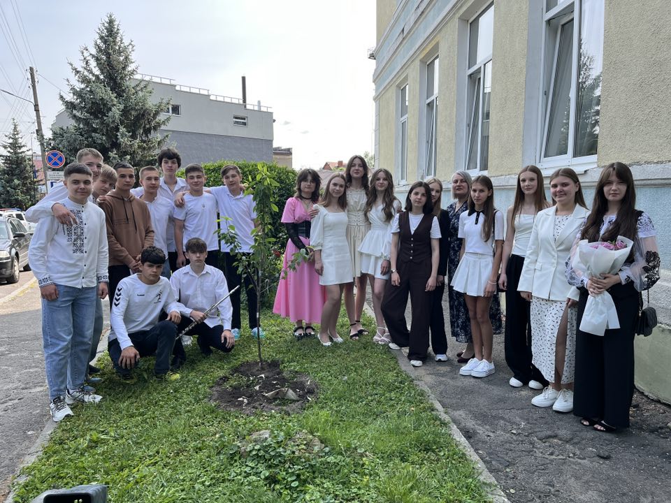 На згадку про закінчення навчання на пришкільній клумбі була висаджена молода сакура, як символ сподівань на мирне квітуче майбутнє наших учнів, школи та України.