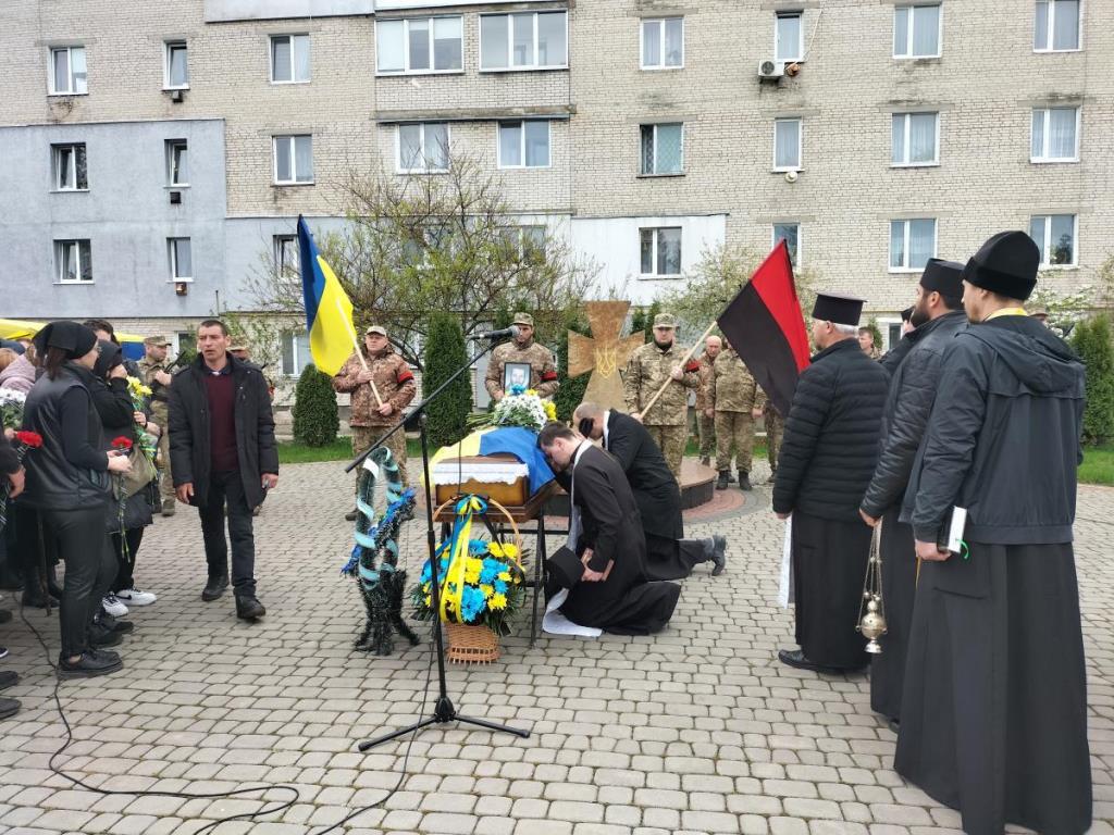 Під постріли військових та мелодію Державного Гімну рідна земля прийняла на вічний спочинок зболене тіло загиблого. А синьо-жовтий стяг, яким була вкрита домовина, військові передали синові Героя, як символ вільної держави, за яку віддав життя його батько.