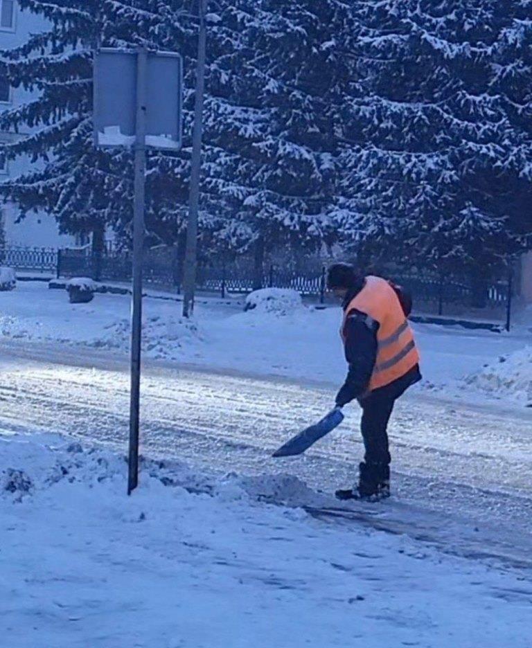 З 7-ї ранку до роботи приєдналися двірники. Їхнє завдання – пішохідні переходи, місця зупинки транспорту та найбільшого скупчення людей. Там, де техніка не пройде, працюють руки та лопати.