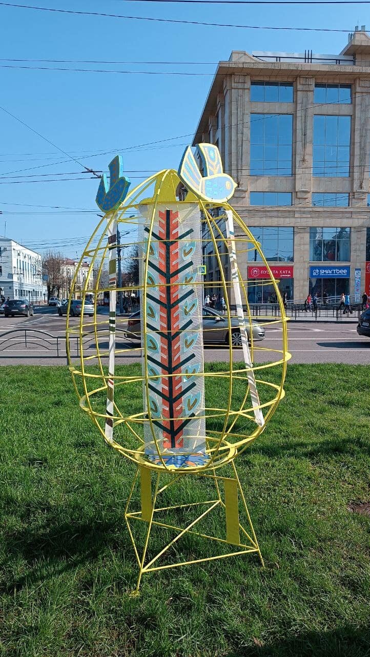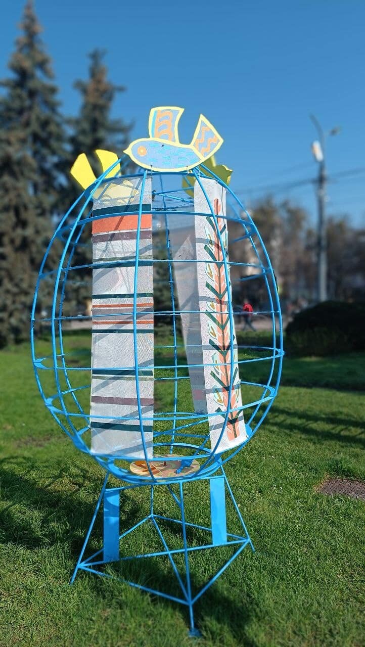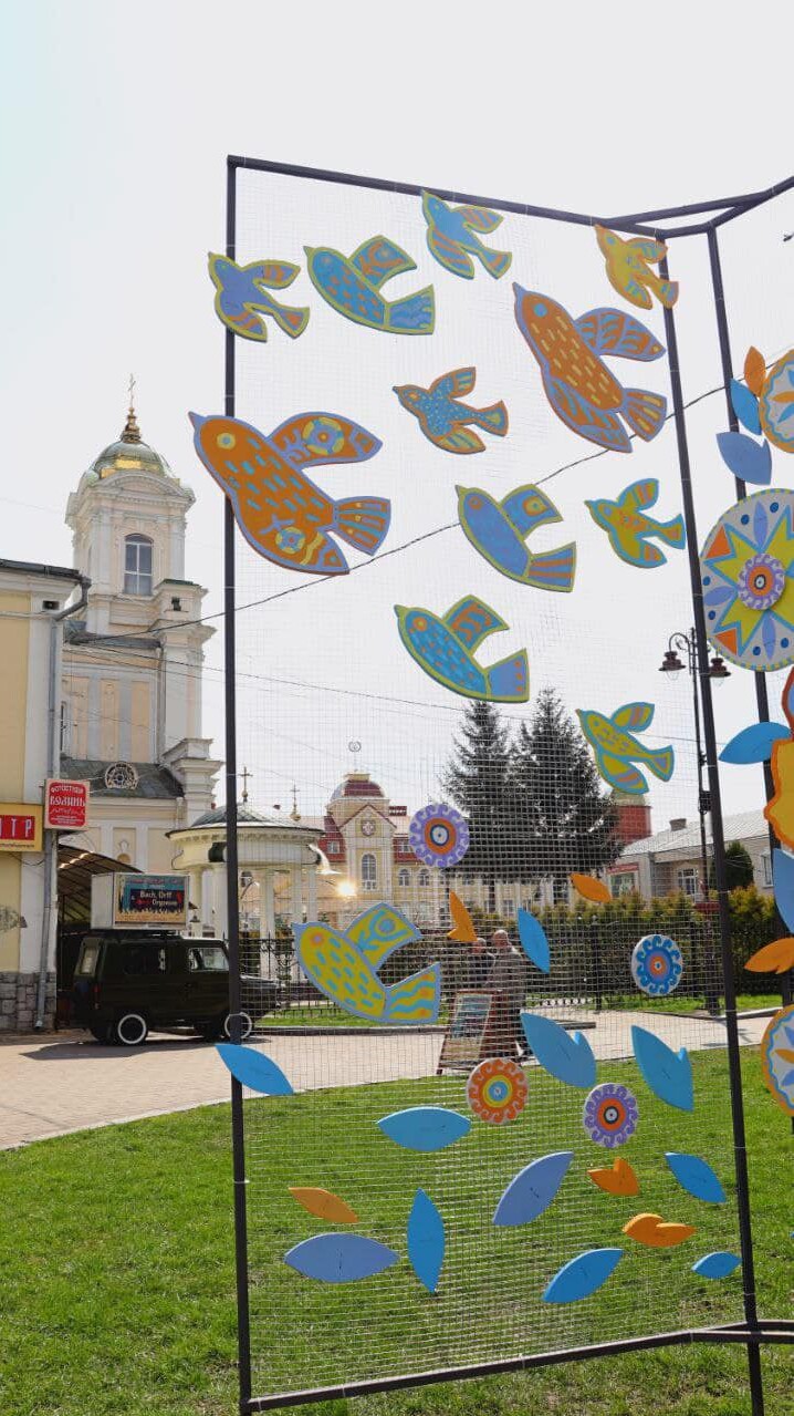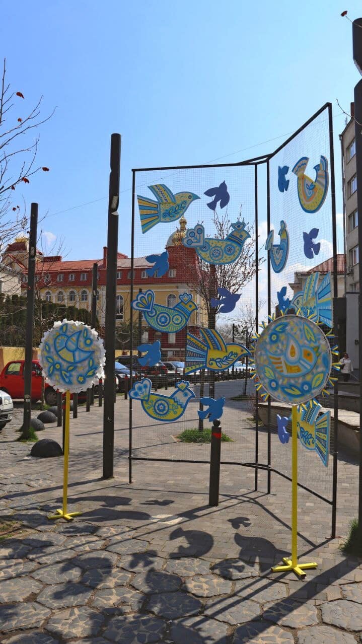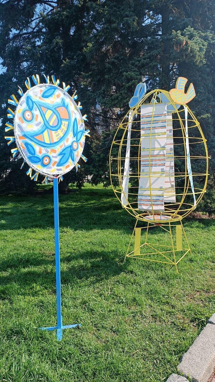Артінсталяція «Воскрес Христос – воскресне Україна!» Основний елемент композиції – декоративні птахи, що символізують світле Воскресіння Христове, віщують настання весни, початок нового життя та є символом відновлення і розквіту України.