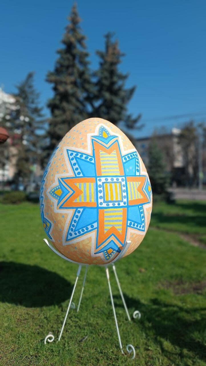 Артінсталяція «Великдень»: пасхальна композиція артоб’єктів, виконаних у жовто-блакитній кольоровій гамі із зображенням Державної символіки України. Декоровані в традиційному орнаменті рушники, як материнський оберіг для синів — Захисників України, духовний символ українського народу, рідного краю. Декоративні дерева символізують розквіт України.