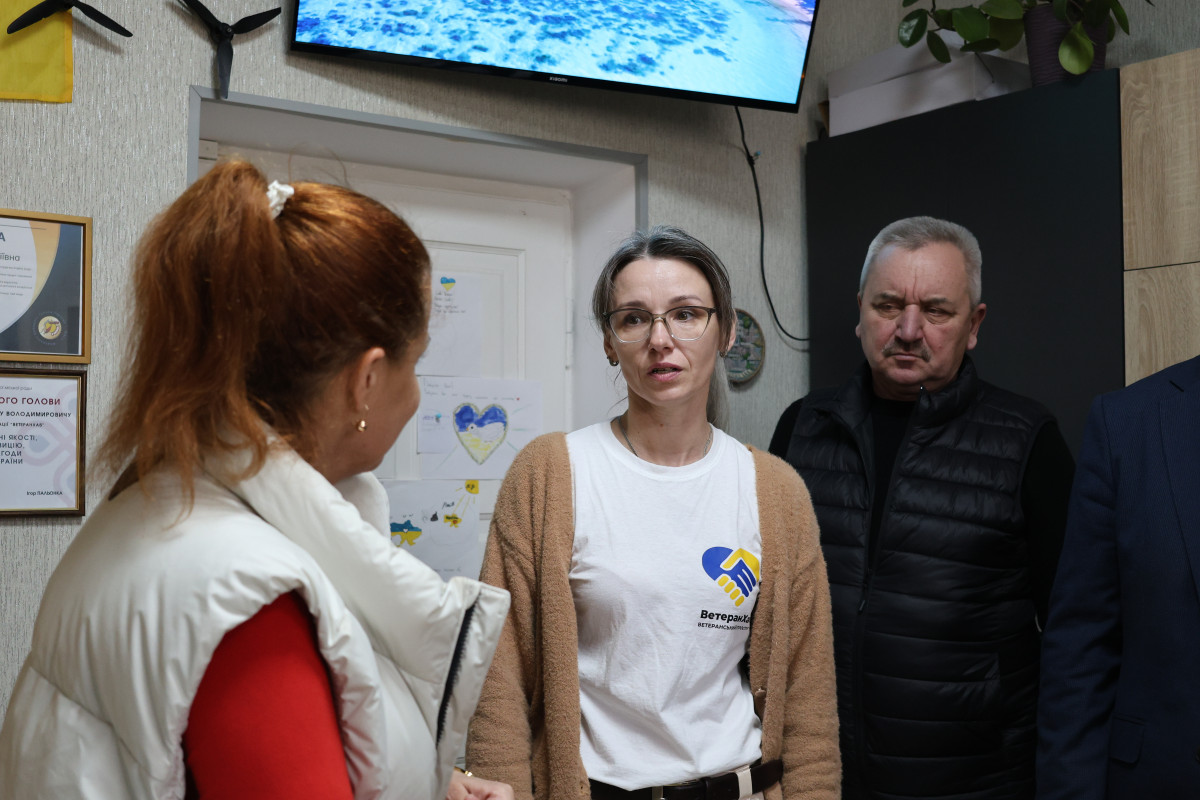 Під час візиту на Волинь міністерка у справах ветеранів України Наталія Калмикова зустрілась із ветеранським активом Володимирського району у просторі «ВетеранХаб». У цьому приміщенні також функціонує місцевий Центр життєстійкості, де водночас працюють фахівці із супроводу ветеранів.
