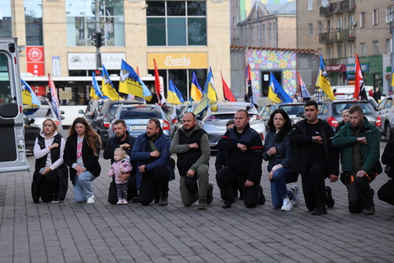 Біля фотостенда пам’яті загиблих Героїв траурна процесія зупинилася і виконала Державний Гімн України.