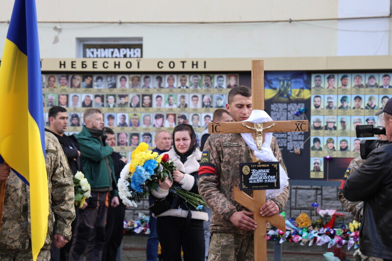 Після завершення чину похорону, труну з тілом загиблого пронесли Театральним Майданом.