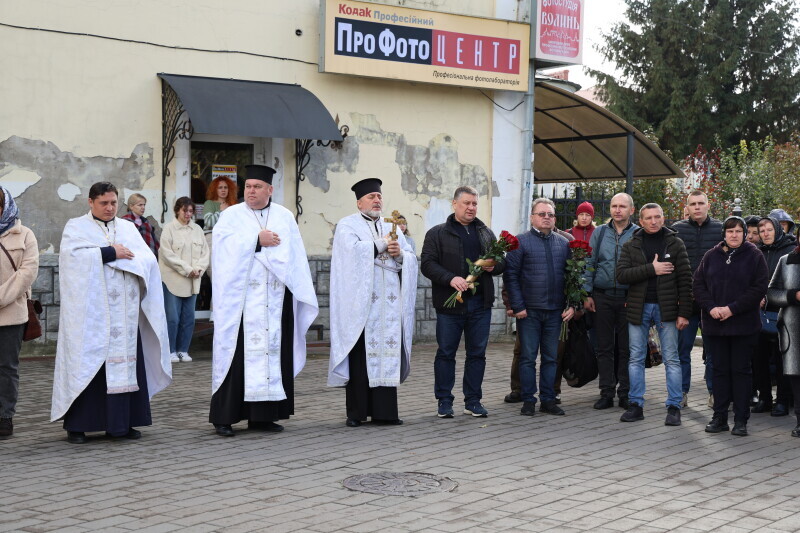До спільної молитви за упокій душі спочилого воїна долучилися рідні, друзі, бойові побратими загиблого, небайдужі жителі громади, а також секретар Луцької міської ради Юрій Безпятко.