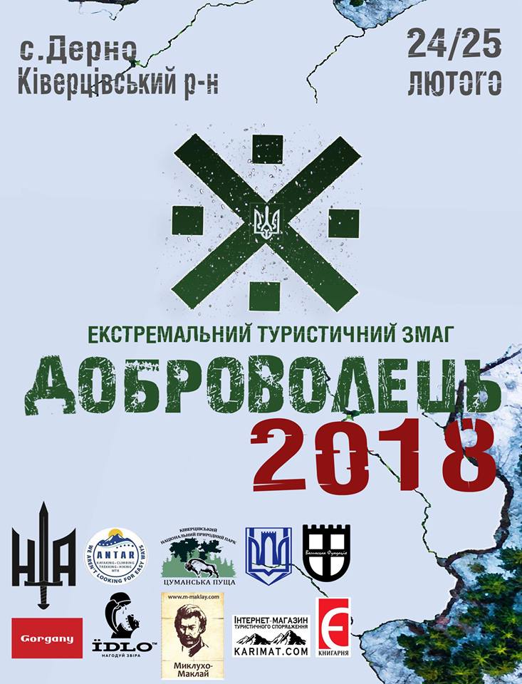 Відчайдухів запрошують взяти участь 24-25 лютого у туристично-екстремальному змаганні «Стежками Героїв «Доброволець-2018», яке проведуть у форматі пригодницьких перегонів.