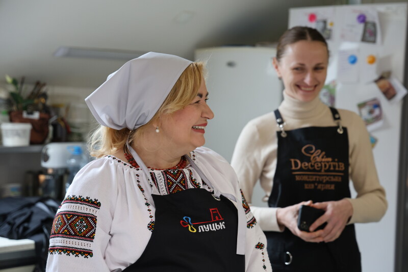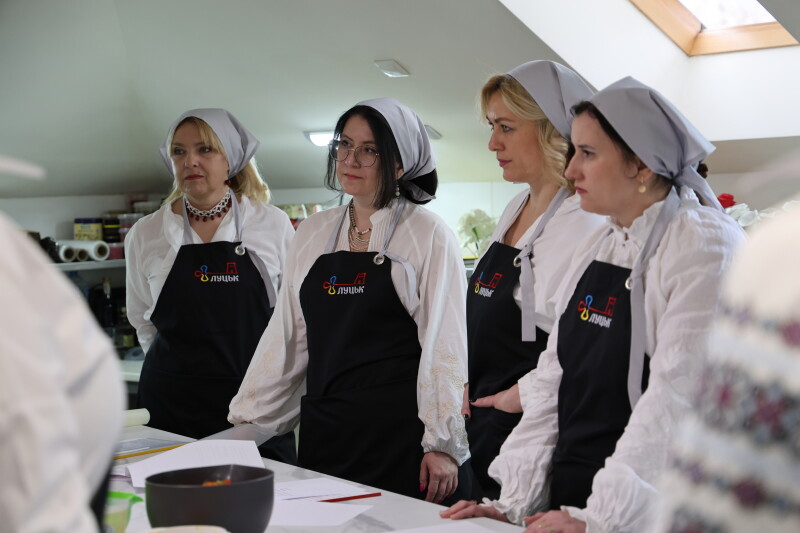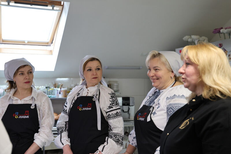 Майстерклас провела власниця кондитерської Світлана Скопюк разом із командою своїх працівників. До участі у ньому долучилася заступник Луцького міського голови Ірина Чебелюк, юристки, освітянки, волонтерки та підприємиці Луцької громади.
