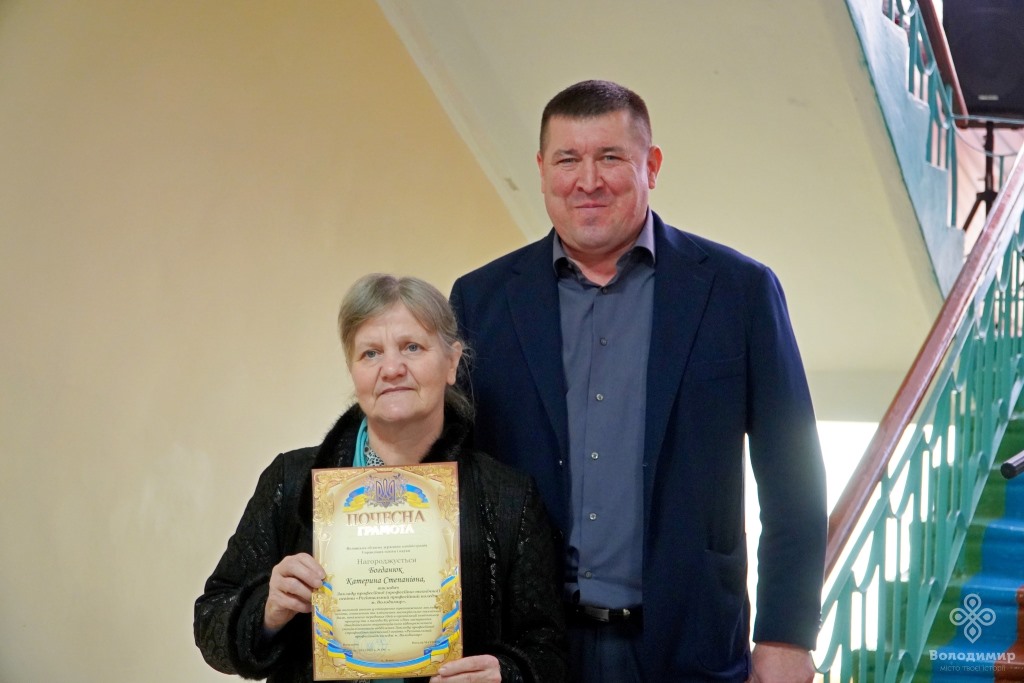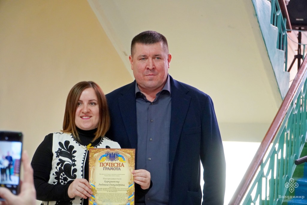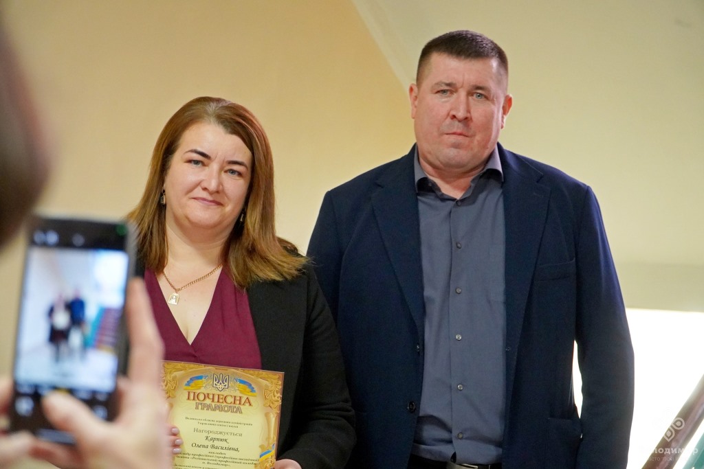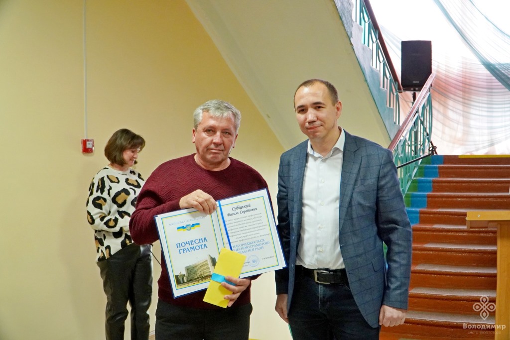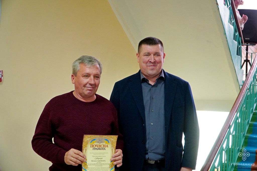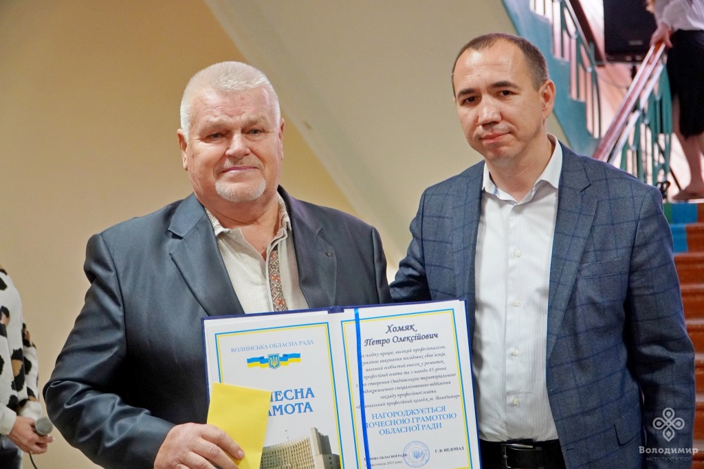 На останок Ярослав Матвійчук вручив почесні грамоти від голови обласної ради, яким за плідну працю, високий професіоналізм й вагомий особистий внесок у розвиток професійної освіти та з нагоди 85-річчя з дня створення Оваднівського територіального відокремленого спеціалізованого відділення закладу професійної освіти “Регіональний професійний коледж м. Володимир” були нагороджені Василь Субіцький та Петро Хомяк.